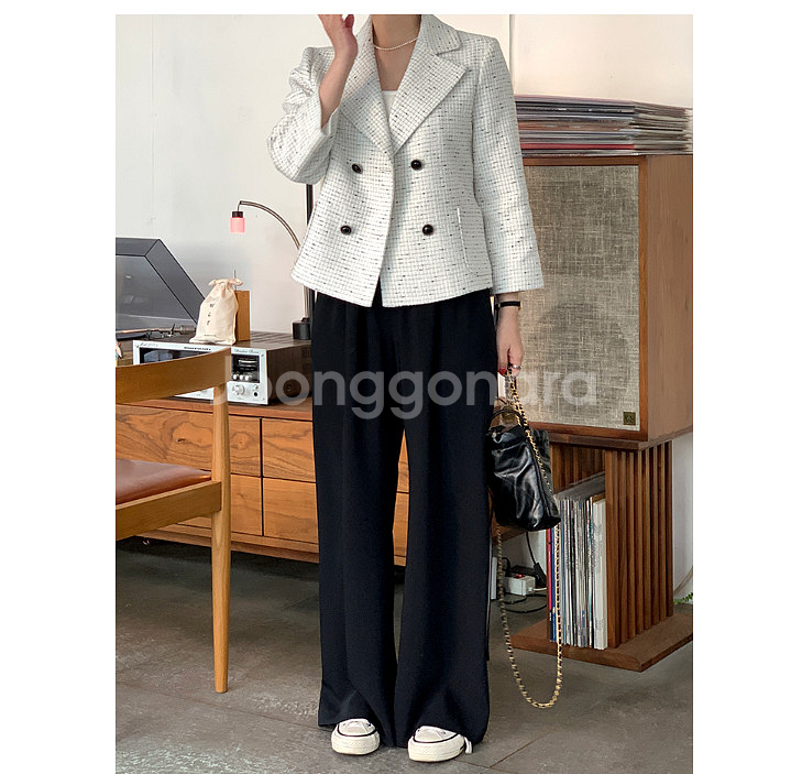 아이링마켓 제작 더블버튼 트위드 자켓 m 구입후 두번정도 입고 옷장에 보관만 했어요. 원단 fabric by stylem, 은사같은게 있어서 약간 더 화사한것 같아요. 확대샷 보면 알겠지만 오돌도돌? 이런식으로 되있어요. 팔은 9부? 긴팔 아니에요. 드라이해서 입으시면 더 각이?살것 같아요. 옷장에서 보관을 오래해서 그른가 각이 좀 안사는 것 같아서요. 중고거래상 반품환불은 안받아요.