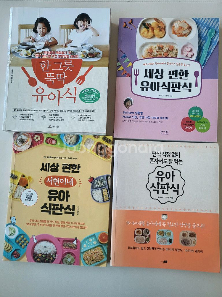 개인정보(거래정보)를 주고받는 행위는 사기에 노출될 수 있으므로 즉시 중고나라로 신고해 주세요 아이 유아식 책 4권 일괄입니다. 한그릇뚝딱 유아식책만 맨앞장 표지 및 내지 테이핑 있고, 나머지는 찢어지거나 낙서된 곳은 없습니다.