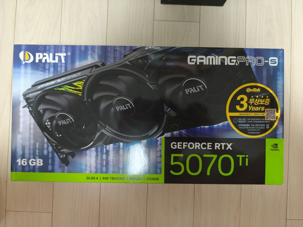 GeForce RTX 5070 Ti 16GB 게이밍 그래픽카드입니다. 박스와 구성품이 모두 포함되어 있고 상태가 깨끗해 보여요. 고성능 게이밍용으로 완벽한 제품입니다. GeForce RTX 5070 Ti 16GB 그래픽카드입니다. 박스와 본체 모두 깨끗한 상태로 보관되어 있어요. 고성능 게이밍용으로 완벽한 제품입니다. 7월 수령 후 상자에만 보관하다 사용했습니다. 보관 위치가 바뀌어서 상자에 까짐이 있으나, 사용상 문제 전혀 없습니다. 함께 제공되는 장패드는 사용 흔적이 조금 있습니다. AS에 필요한 구매전표를 제공할 수 있습니다. 2025년 7월 15일 수령으로 3년 무상 -> 2028년 7월 15일까지 AS 가능합니다. 정말 사용 안했고, 한 번 탈착한 게 전부입니다. 많은 문의 바랍니다.