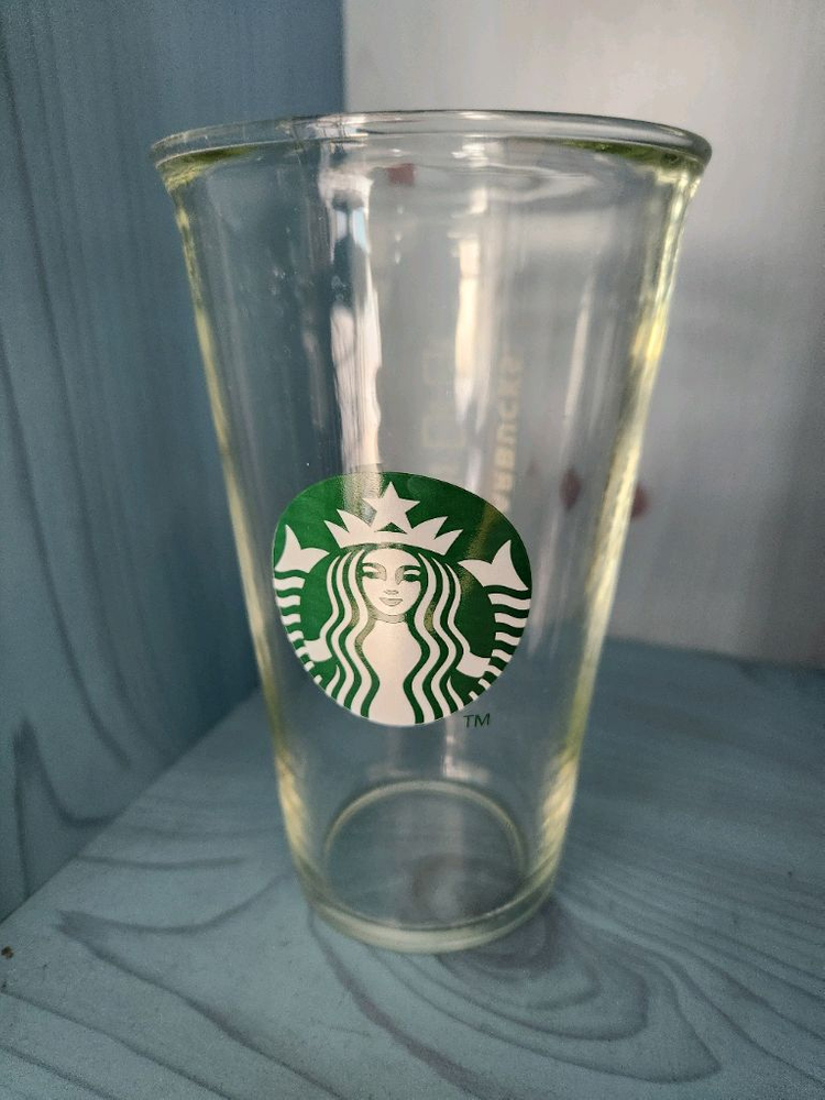 투명한 스타벅스 로고 글라스 컵입니다. 높이15cm 지름9cm 입니다