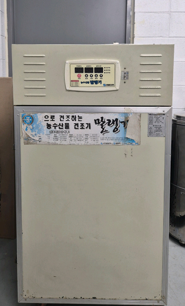 말랭기 PS-1000A 고추 식품 간식을 회전하며 고르게 말려줍니다. 고장없이 튼튼하기로 유명한 제품이라고 합니다. 밖에 내놓아 외관은 별로지만 짱짱하게 잘 돌아갑니다. 채반칸: 7칸 채반수 :12개 크기:750/810/1320cm 무게:70kg 고추건조용량:25kg 정격소비전력:2.5kw 부천 직거래