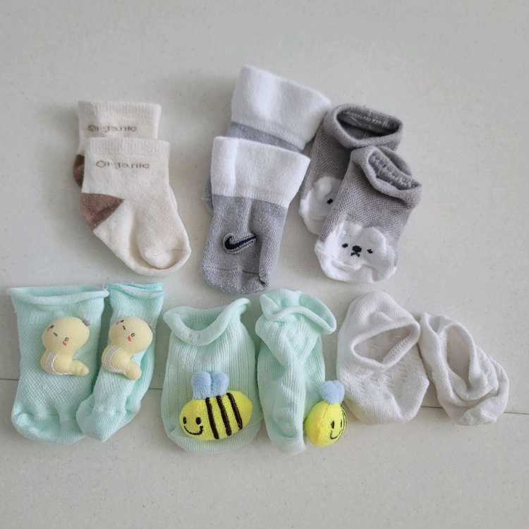 ⚠️예의없는분 사절❌️ ⚠️중고거래특성상 반품불가 ⛔️네고불가⛔️육아중이라 답변 늦을 수 있어요! 다양한 디자인의 아기 양말 5켤레를 모아봤어요 아기들 금방크니 저렴하게 잠깐 신기세요~ 자연건조 아기세제 세탁완료 ✔️반값택배 gs25 +2000/ 일반택배 +4000