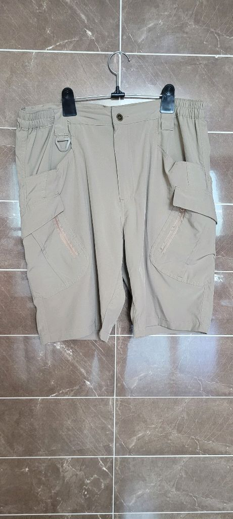 워리어웨어 카고 반바지 XL 사이즈 베이지 색상이에요 폴리에스터 90.5%, 스판덱스 9.5% 소재로 편안하게 착용 가능해요 허리 45~8, 밑단 26, 총장 54/56 사이즈로 넉넉하게 나왔어요 활동적인 분들에게 추천드리는 편안한 반바지랍니다 포켓이 6개 입니다~ 일반택배 3500 반값택배 2000 교환,환불 안되니 고민하시고 연락 주세요 먼저 사시는 분이 임자