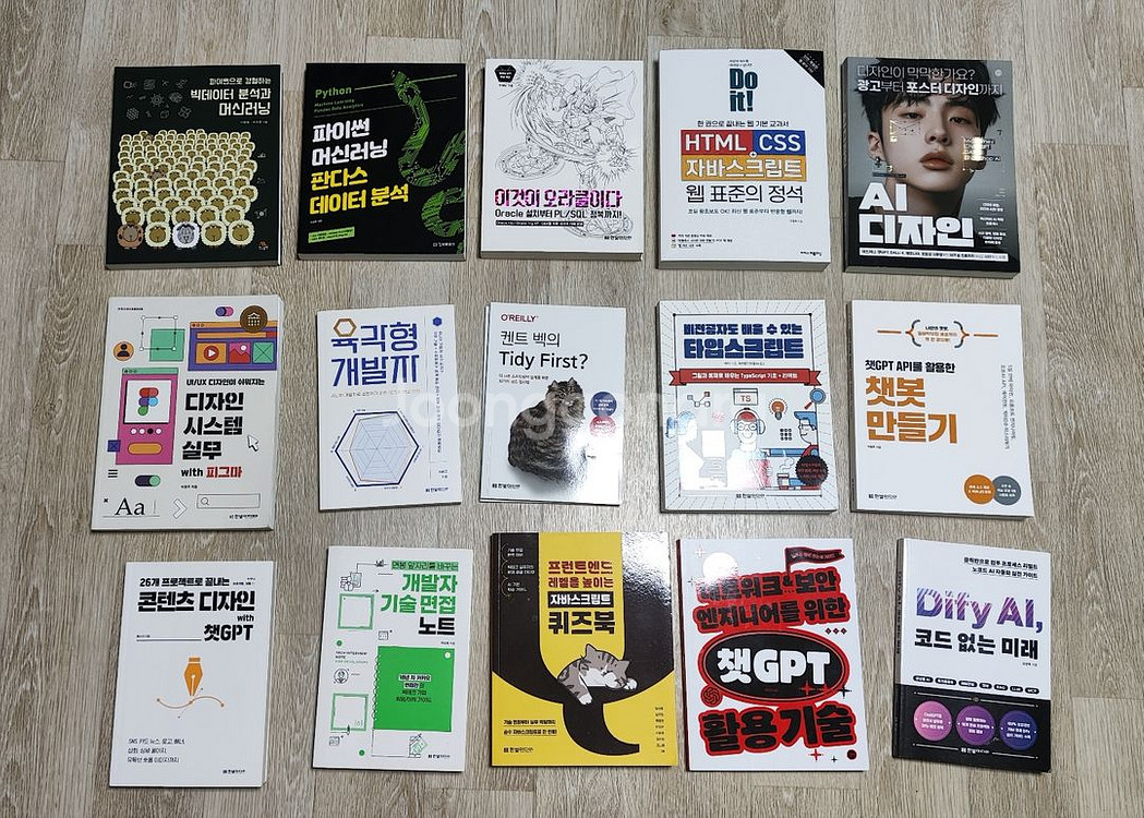 1. 파이썬으로 경험하는 빅데이터 분석과 머신러닝 16,000원 2. 파이썬 머신 러닝 판다스 데이터 분석 16,000원 3. 이것이 오라클이다 12,000원 4. Do it! HTML+CSS+자바스크립트 웹 표준의정석 개정판 18,000원 5. AI디자인 13,000원 6. 피그마 12,000원 7. 육각형 개발자 (1~6번 구입시 사은품) 8. 켄트 벡의 Tiny First? (1~6번 구입시 사은품) 9. 비전문가도 배울 수 있는 타입스크립트 (1~6번 구입시 사은품) 10. 챗GP API를 활용한 챗봇 만들기 ((1~6번 구입시 사은품) 11. 26개 프로젝트로 끝내는 콘텐츠 디자인 with 챗GP (1~6번 구입시 사은품) 12. 연봉 앞자리를 바꾸는 개발자 기술면접 노트 (1~6번 구입시 사은품) 13. 프론트엔드 레벨을 높이는 자바스크립트 퀴즈북 (1~6번 구입시 사은품) 14. 네트워크&보안 엔지니어를 위한 챗GP 활용기술 (1~6번 구입시 사은품) 15. Dify AI, 코드 없는 미래 (1~6번 구입시 사은품) * 위에 책들은 모두 새책 수준의 책입니다. * 보시면 아시겠지만, 책들 상태는 최상이며, 최신판 책들인 편입니다. * 7 ~ 15 책은 위에 1~6번 도서 한권 구입시 한권을 원하시면 드립니다. * 위에 글들을 꼭 확인하고 문의 주세요. 그외에 답변 안함 * 네고 문의는 안받습니다. * 직거래 시간: (평일) 6:30pm ~ 8:30pm, (주말)10am ~ 8pm. * 직거래 장소: 서원역 (이동X) * 택배 : 택배 일반(4,500원), GS25반값(2,700원), [ * 부피가 큰 경우는 반값택배 불가할수 있습니다. ]
