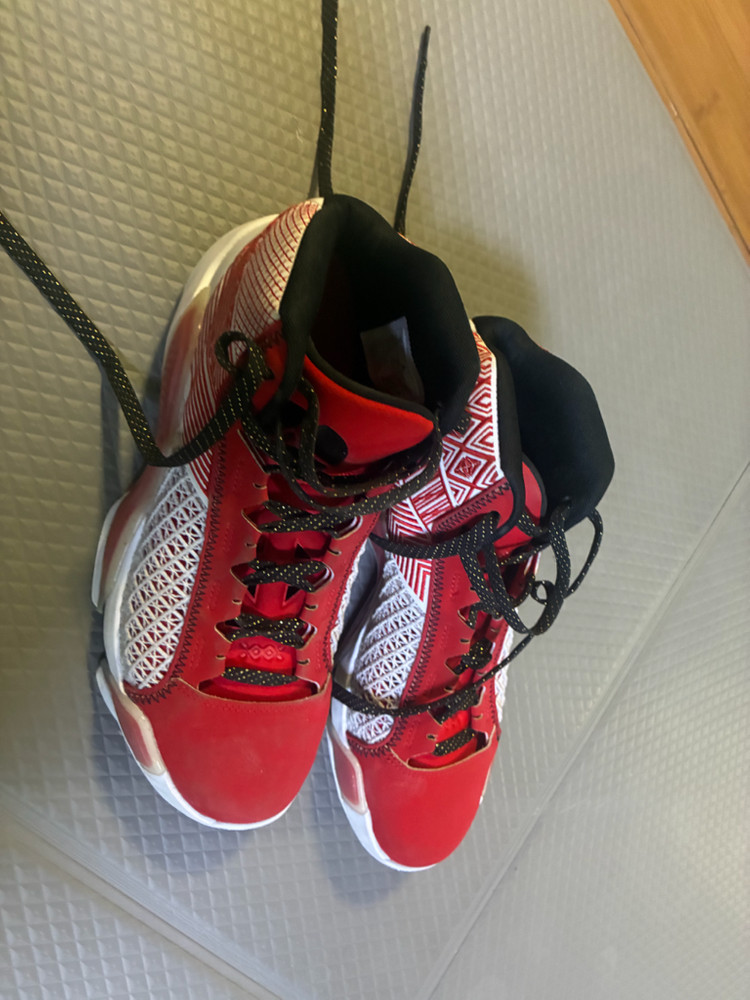 나이키 에어 조던 38 PF 농구화 레드 색상이에요 사진에서 보이는 것처럼 멋진 디자인과 편안한 착용감을 자랑해요 농구 실력 향상에 도움을 줄 수 있는 좋은 선택이 될 거예요 운동할 때나 일상생활에서 편하게 신기 좋아요 위 내용은 ai가 작성한 내용이고, 구매 후 실내농구코트에서 2회 사용이 전부여서 거의 새제품 수준입니다.