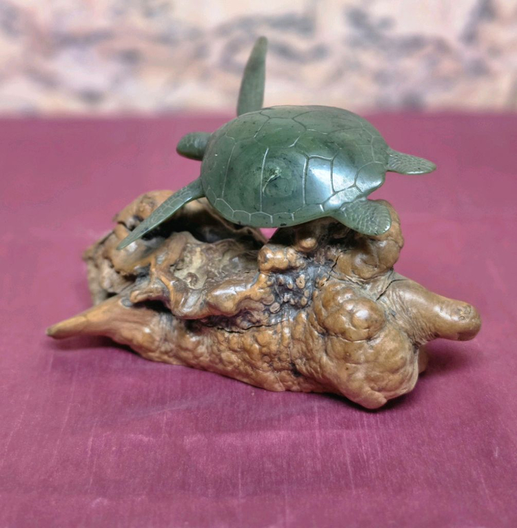 *아티스트:John Perry. *재로:거북이는 옥을 모방하여 제작된 수지(resin) 이며,베이스는 자연 나무 뿌리 (burlwood)입니다. *특징:각작품은 수작업으로 제작되어 고유한 모양과 색상을 가지며,서명과 진품 인증서가 포함될 수 있습니다. *목적:해먕 생물을 주제로 한 인테리어 장식용 수지뿜입니다. *크기(mm)* ♠︎넓이:220 ♠︎높이:140 ♠︎깊이:115 *사진침조후 구매바랍니다. *택배는 안전한 우체국 택배로 보내드립니다. *감사합니다.