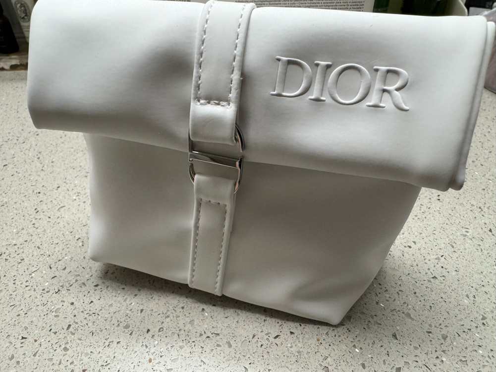 디올 스노우 라인 화이트 파우치와 미니어처 화장품 세트예요 파우치와 함께 에센스 오브 라이트 크림, 마이크로-인퓨전 세럼, 톤업 프로텍터 SPF50/PA+++, 로션까지 알찬 구성으로 준비했어요 선물용으로도 좋은 고급스러운 디올 화장품 세트랍니다 여행이나 외출 시 간편하게 휴대하기 좋아요