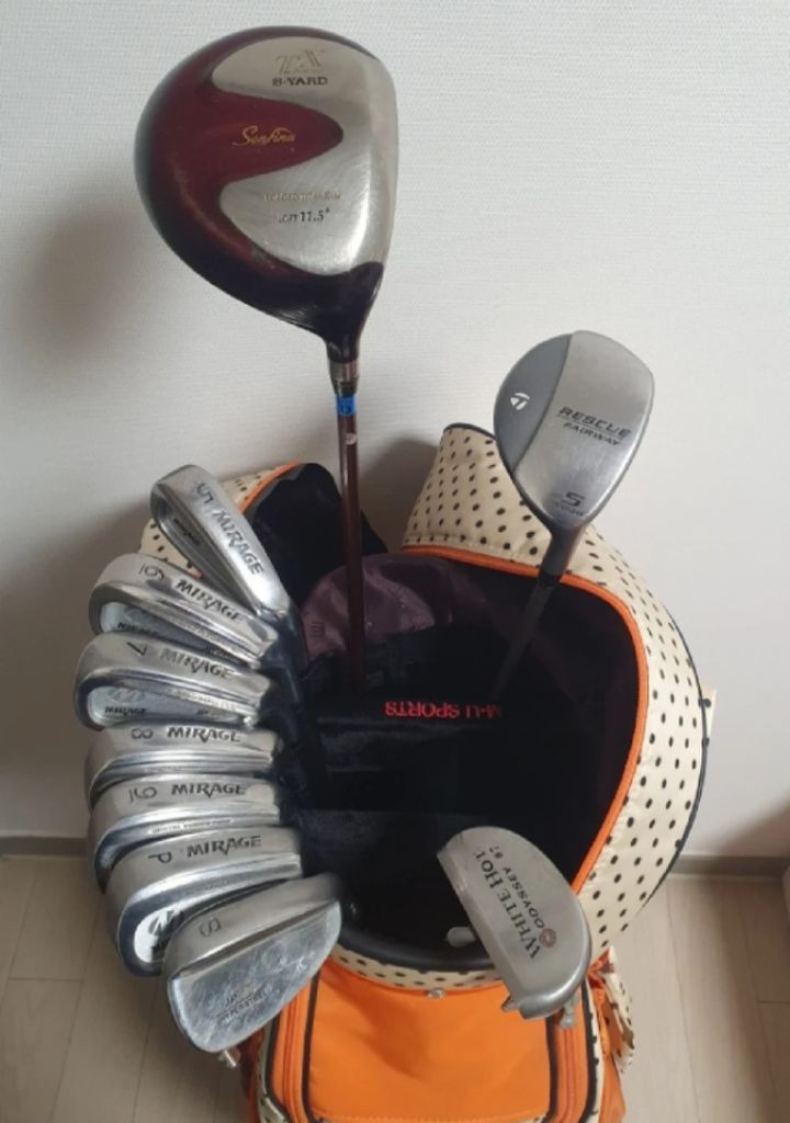 구성품 1. 파워빌트 Mirage JP500 아이언 (5,6,7,8,9,S,P) MADE IN JAPAN 2. S-YARD Senfina 드라이버 3.TaylorMade Rescue Fairway 5번우드 4.오디세이 White Hot 퍼터 5.MU Sports 골프백 모두 flex L 입니다 사용감 조금외 상태 양호합니다 골프백은 거의 새제품이고 택도 아직 그대로 달려있습니다 비싸게 구입했는데 싸게 팝니다구입 원하시면 연락주세요 먼저 오시는분께 판매하겠습니다 ✨️✨️✨️ 직거래만 가능하구요 직거래는 인천 시민공원역쪽에서 가능합니다