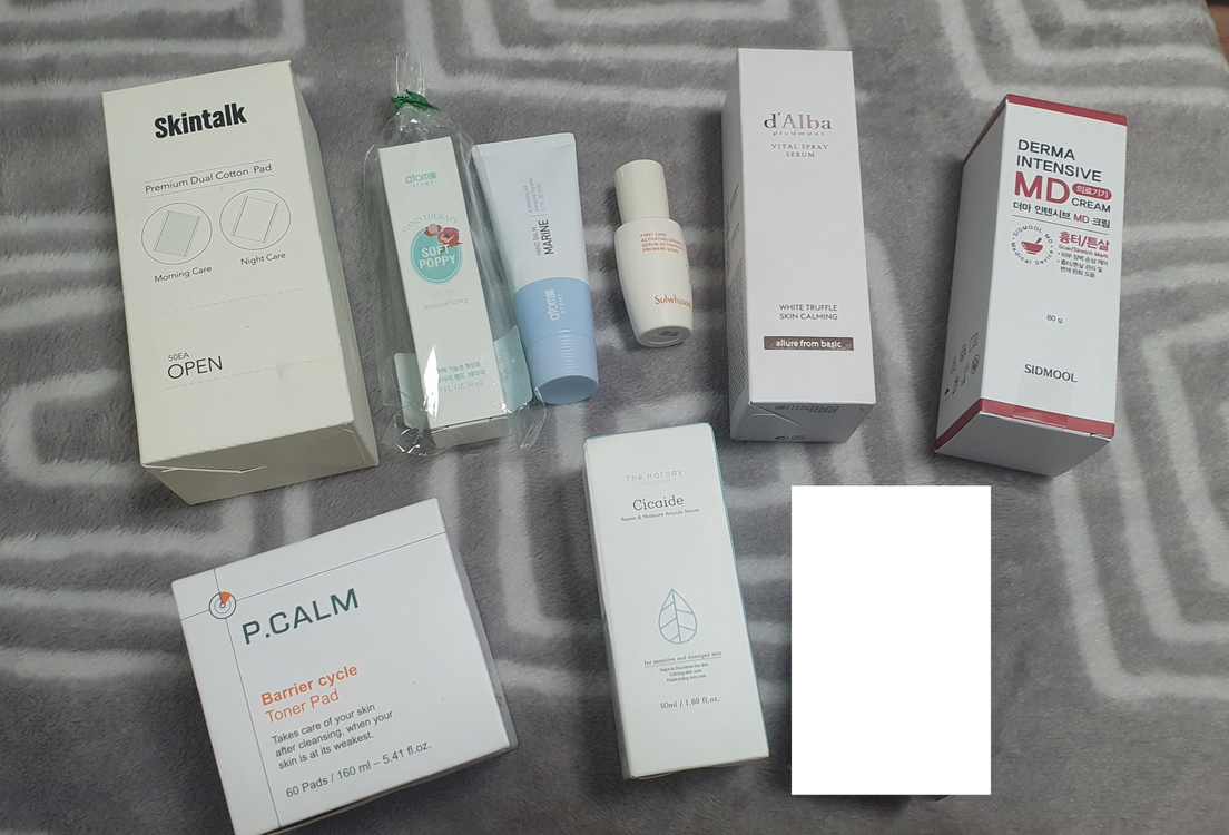 (새상품/미개봉)화장품 정리합니다~ 세럼, 에센스, 토너,크림, 핸드밤 모두 일괄 2만원에 드립니다! 모두 새상품(미개봉)이고, 설화수 처음부터 쉴드되어 있지 않은 (새상품)입니다 유통기한 모두 1년안팍 남았고, 나머지는 그 이상 남았습니다 택배비는 3500원 달바 세럼 1개(미개봉) 100ml 정가: 29,000원 /유통기한 27년 3월 더하르나이 시카이드 세럼 50ml (미개봉) 인터넷가: 20,300원 / 27년 2월 설화수 윤조 에센스 8ml (새것) 인터넷가: 60ml 본품 48,000원 (8ml 용량: 약 6,400원) 피캄 토너패드 (미개봉) 인터넷가 :18,900원 /유통기한: 27년2월 시드물 더마크림 80g (미개봉) 인터넷가 : 2개 32,000원(개당 16,000원)) / 유통기한: 28년 10월 애터미 핸드밤 마린 50ml (미개봉) 인터넷가: 3개 25,800원(개당 8,600원) 에터미 핸드 테라피 블루 30ml 인터넷가:(미개봉)3개 15,800원(개당 약5,200원) skintalk 화장솜 2000원 T. 010-4영칠오-04오육 반값태배 +2500원 일반택배 +3500원
