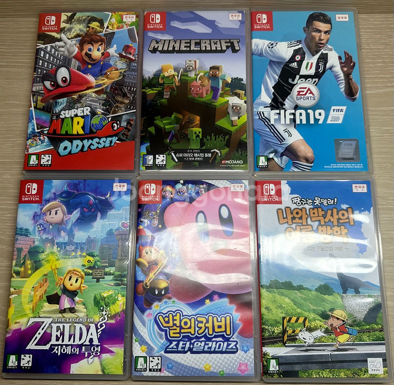 슈퍼마리오 오디세이- 3.9 마인크래프트- 2.5 피파19- 0.6 젤다의전설 지혜의투영- 3.6 별의커비 스타얼라이즈- 3.9 짱구는못말려 나와 박사의 여름방학- 3.0 일반택배 3,800원 반값택배 1,900원 뽁뽁이 포장해서 당일날 안전하게 부쳐드립니다:) 연락주세요:))