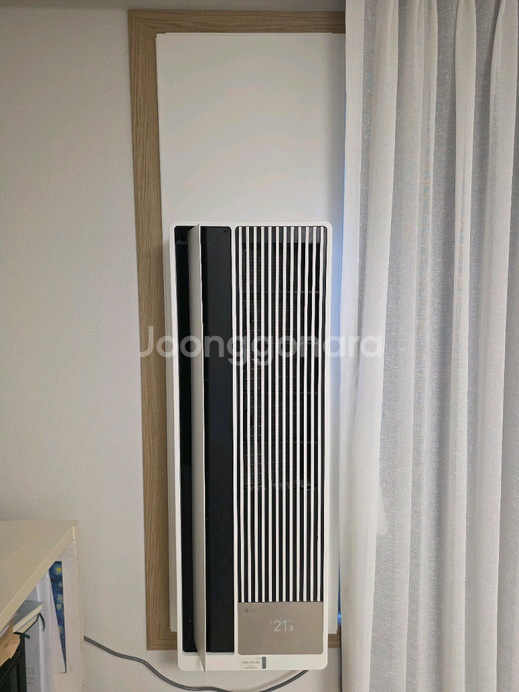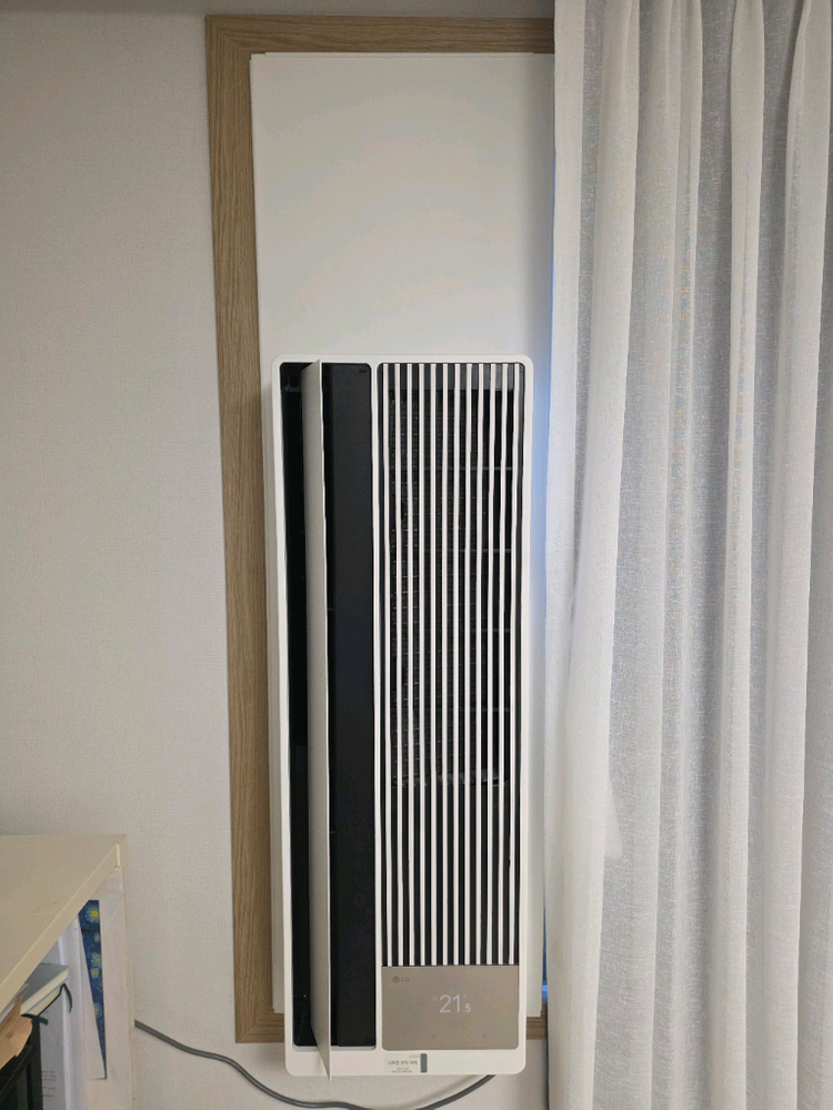 안녕하세요 LG 휘센 오브제컬렉션 엣지 창문형 에어컨(창호형 에어컨) WQ05FCWDS1 16.5㎡형 판매합니다. 작년(2025년) 5월에 구입하여 1년이 채 되지 않은 제품입니다.(사진 참고) 아기방에서 밤에만 2~3시간씩 사용해서 실사용시간 아주 짧습니다. 마감키트를 함께 구입하여 설치된 제품으로 외관상으로도 매우 깔끔합니다. WQ05FCWDS1이 LCD 모델인데 밝기 0% 완전 소등이 가능해서 아기방 등에서 취침 시에 사용하기 적합합니다.(사진 참고) 그 밖에도 LCD 모델이 (LED 모델과 비교해서) 에어컨 사용량, 사용시간, 전력량 표시 등에서 장점이 있다고 하네요. 감각적인 오브제컬럭션 엣지 디자인에 밝은 크림화이트 색상이라 인테리어 측면에서도 훌륭하고, ThinQ, 맞춤건조, 스마트케어 등의 기능도 있어서 유용하게 사용하실 수 있을 겁니다. LG전자 홈페이지에서 123만9천에 구매했는데 올해 다른 에어컨을 추가로 구매하게 되어 아쉽지만 판매합니다. 자석식으로 본체에 부착 가능한 리모콘 함께 드려요. 직거래는 경기도 시흥에서 할게요. 직접 와서 가져가시거나 LG전자 통해서 이전설치 하시면 될 것 같습니다. 보다 자세한 스펙은 아래 LG전자 홈페이지 링크를 참고 부탁드려요. https://www.lge.co.kr/air-conditioners/wq05fcwds1