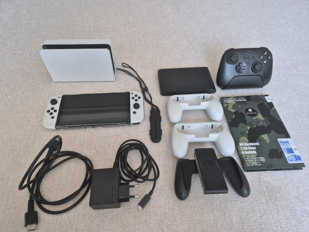 개인정보(거래정보)를 주고받는 행위는 사기에 노출될 수 있으므로 즉시 중고나라로 신고해 주세요닌텐도스위치 oled 풀세트 팔얼블1(선은 따로 구입필요) 케이스+강화유리 장착 스컬앤코 강화유리 2장 거치스탠드 조이콘장착하는 부품 무료배송