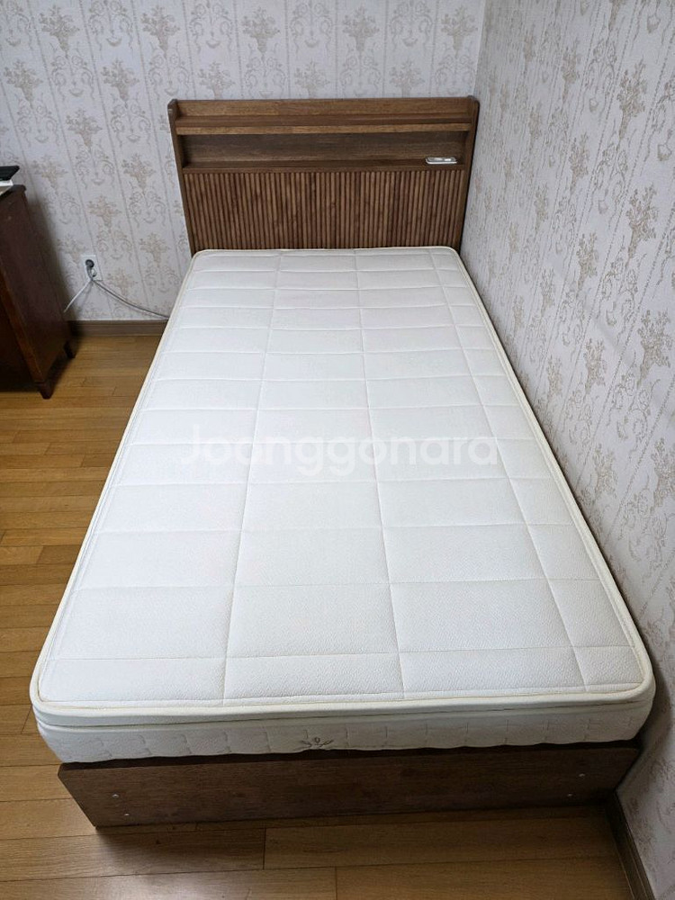 작년 6월에 개인 방에 둘 용도로 구매 후 실사용 거의 없이 방치만 하다가 올해 말에 이사 가게 되어서 미리 정리할겸 판매합니다 프레임 : 잉글랜더 컬리 템바보드 원목 수납 침대 (월넛 색상) 템바보드 헤드 디자인으로 충전기 꽂을 수 있고 led 조명 있습니다 하단에 수납장 3개 있고 레일도 새것처럼 부드러우며 찍힘이나 까짐 전혀 없습니다 매트리스 : 지누스 키스톤 스프링 매트리스 25cm 25cm 두께로 볼륨감이 좋고 탄탄하게 허리를 받쳐주는 하드 타입입니다 사용감이 거의 없는 데다 항상 위에 커버를 씌워 보관했기 때문에 오염이나 얼룩 하나 없이 깨끗합니다 가구 특성상 직접 오셔서 가져가셔야 합니다.