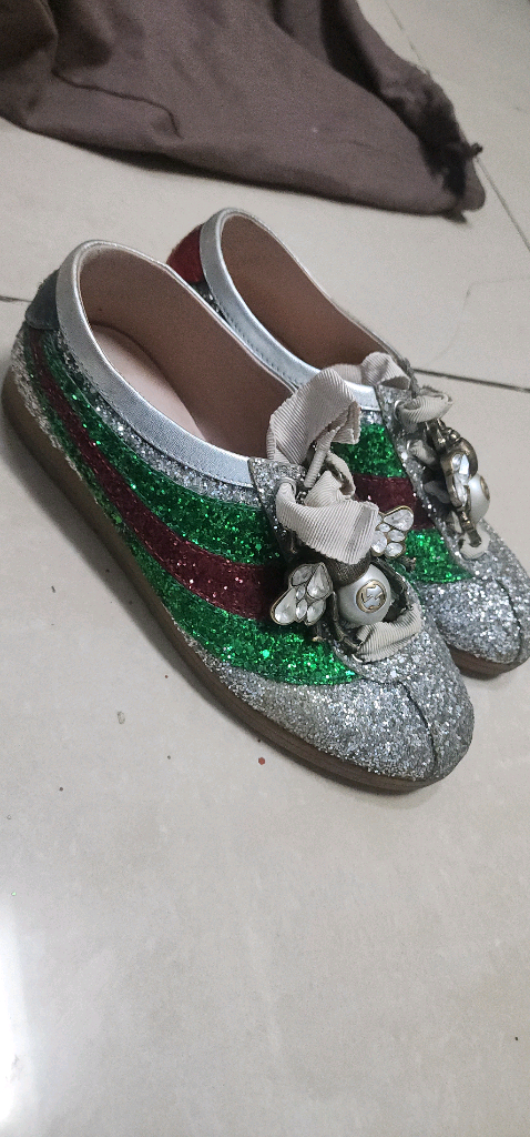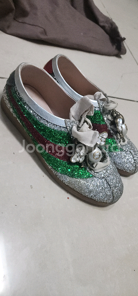 제게시물에 상품 많으니 여러개 구매하심 에눌해드려여 구찌 스팽글 스니커즈입니다 정품이구여 신발만있어여 같은모델 가격 온라인 캡쳐사진 참고하시구여 빤짝이 조금씩 떨어치지만 관리해서 빈티지하게 신으심될거에여 상태감안 정품 저렴하게 판매하니 예민하신분은 패스 부탁드려요