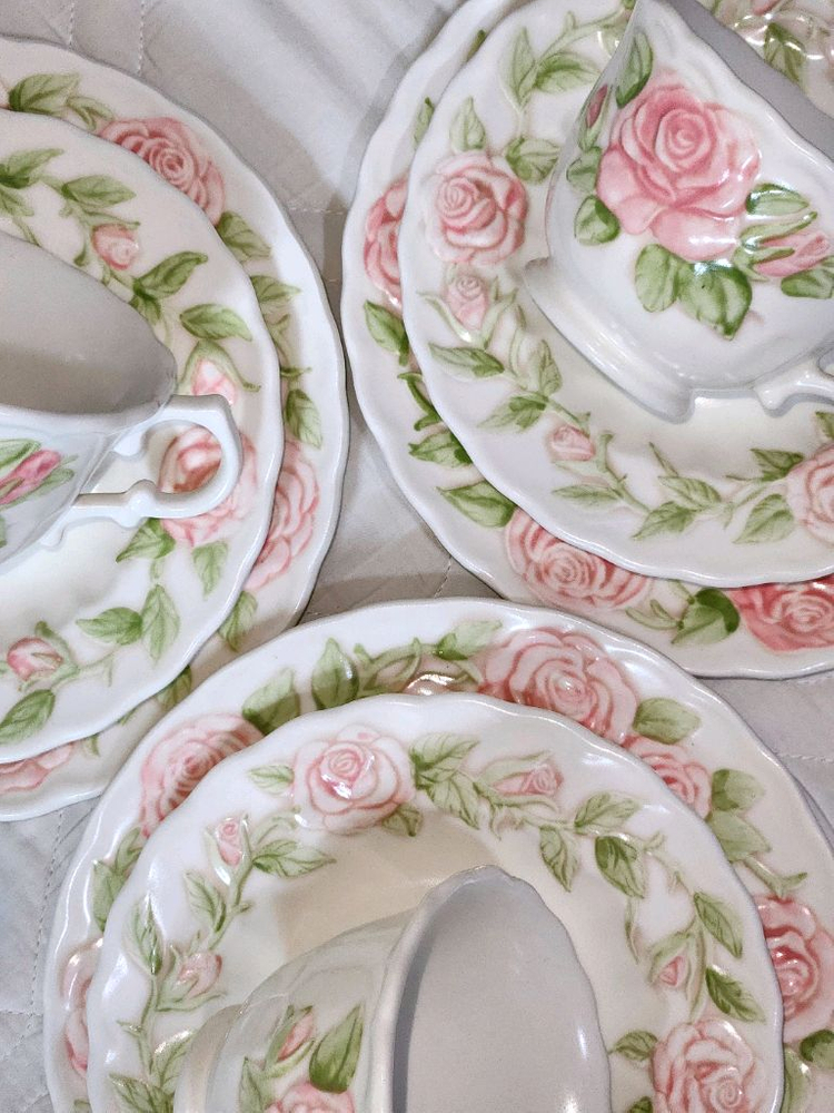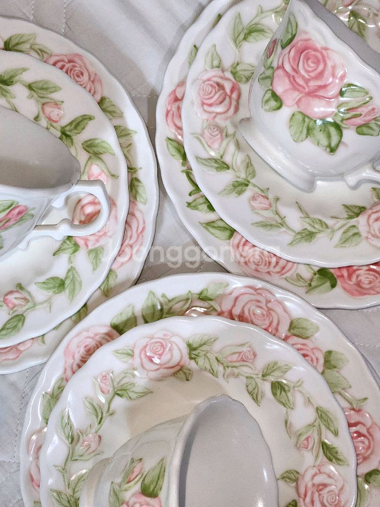 데이지 패턴과 함께 유명한 멧락스의 버논로즈 패턴입니다. 찻잔+ 소서 + 디저트 플레이트 구성 소장용 마지막으로 남겨둔 트리오 1조 4만원에 저렴하게 판매합니다. *컨디션 상세 실금, 빙열 없고 칩, 스크래치 있습니다. 사진 4,5 확인해주세요 찻잔_ 손잡이랑 립에 작게 핑크 페인트 소서_ 작은 스크래치 2곳 디저트 플레이트_ 모서리 칩, 스크래치 Size_ Cup D 10 (cm) Saucer D 16 (cm) dessert plate D 19 (cm) [Made in USA] 1965년에서 1979년까지만 생산하던 빈티지 제품 입니다. 빈티지의 특성상 사용감과 세월의 흔적이 남아있습니다. 이를 알고 숙지하신 분들께서 구매하시길 부탁드리고, 예민하신 분 피해주세요. 도자기 생산 시 발생하는 핀홀, 검은 점, 하단 삼발이 자국들은 모든 피스에서 공통적으로 나타나요.