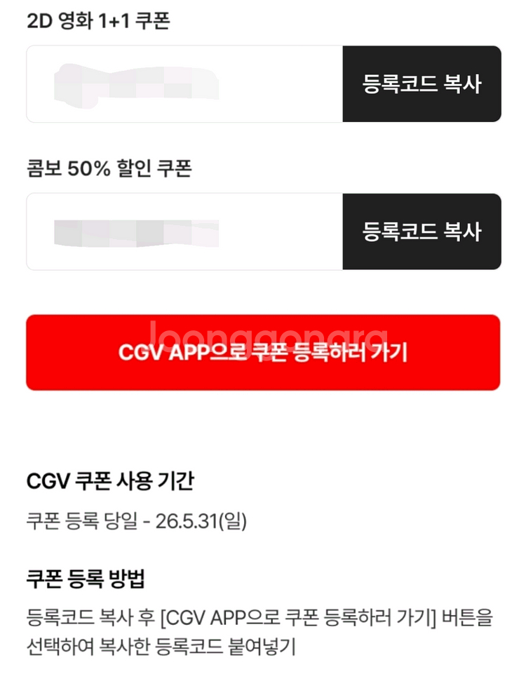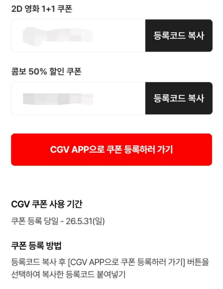 신세계 cgv 1+1 쿠폰, 팝콘콤보 50% 쿠폰