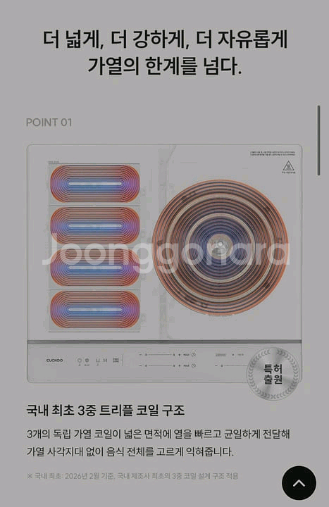 안녕하세요😄 쿠쿠 양산직영점에서 따스한 새봄을 맞아 최신인덕션 특별행사를 진행합니다! ☆쿠쿠 AI 트리플 프리존 3구인덕션☆ (모델명 CIR-JS301FW) 인덕션으로 바꾸는 이유?🤓 -가스는 건강에 해로워요😫 화재위험도 높죠😵 -열효율이 높아 비용절감효과도 뛰어나요! -청소와 깨끗한관리가 훨씬 편리합니다😜 -그리고 고급스런 디자인으로 주방의 분위기를 더욱더 업! 요리하고 싶은 마음이 가득😁 쿠쿠 AI인덕션 무엇이 다를까요? 차세대 신기술 AI기능이 탑재되 더욱 스마트한 조리가 가능해졌어요 ☆AI끓어넘침방지 기능 -요리하며 이것저것 준비하다보면 깜빡하기도하죠😅 스마트 AI사운드센서를 활용하여 끓는 소리를 실시간 감지 화력을 자동으로 조절하여 넘침을 방지해줍니다 ☆AI오토포커싱 가열 -용기사이즈를 자동인식해 크기에 맞게 최대출력으로 빠르고 강력하게 가열해줍니다(최대 3400kw화력🤭) ☆국내 최초 3중 트리플 코일 구조 -3개의 독립된 가열 코일들이 더넓은 면적 더빠른 가열을 통해 음식을 고루익혀줍니다☺️