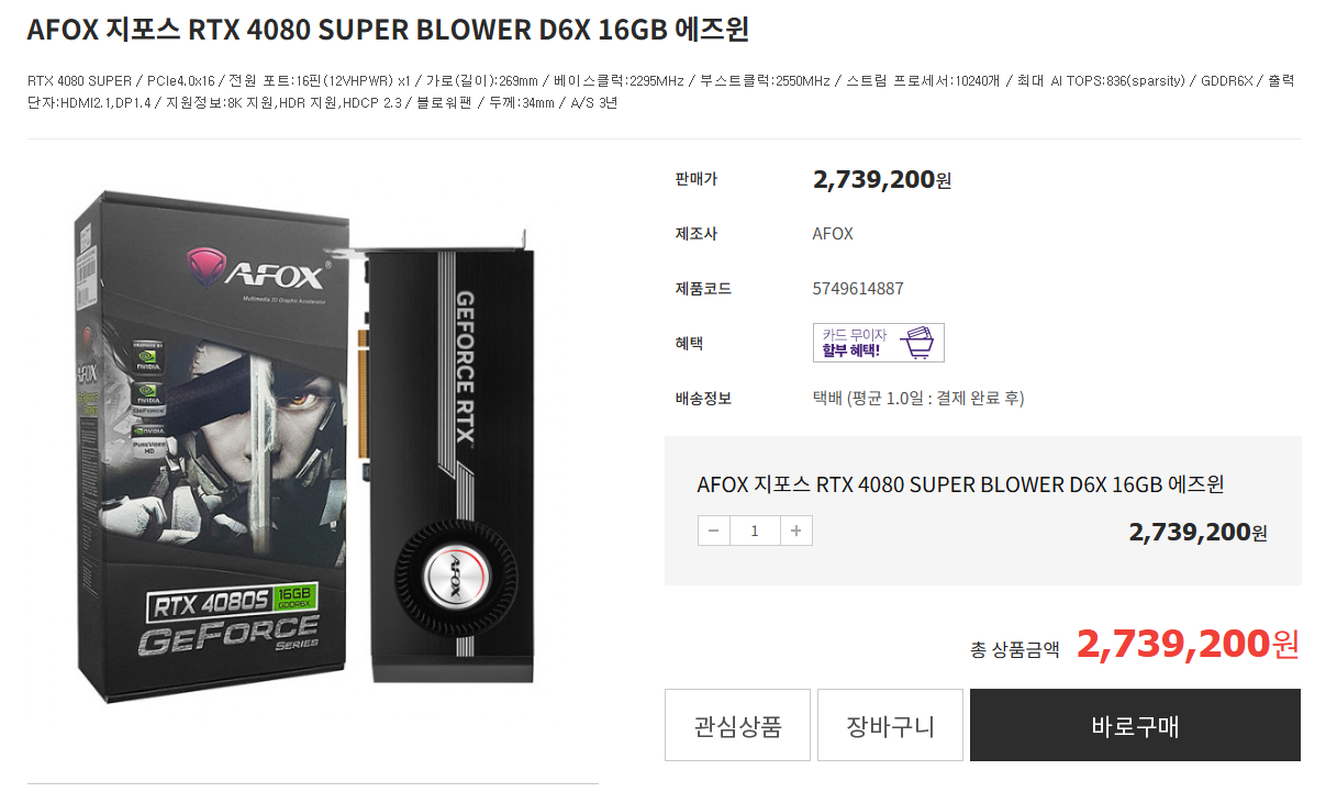 RTX4080 SUPER BLOWER 미개봉 판매