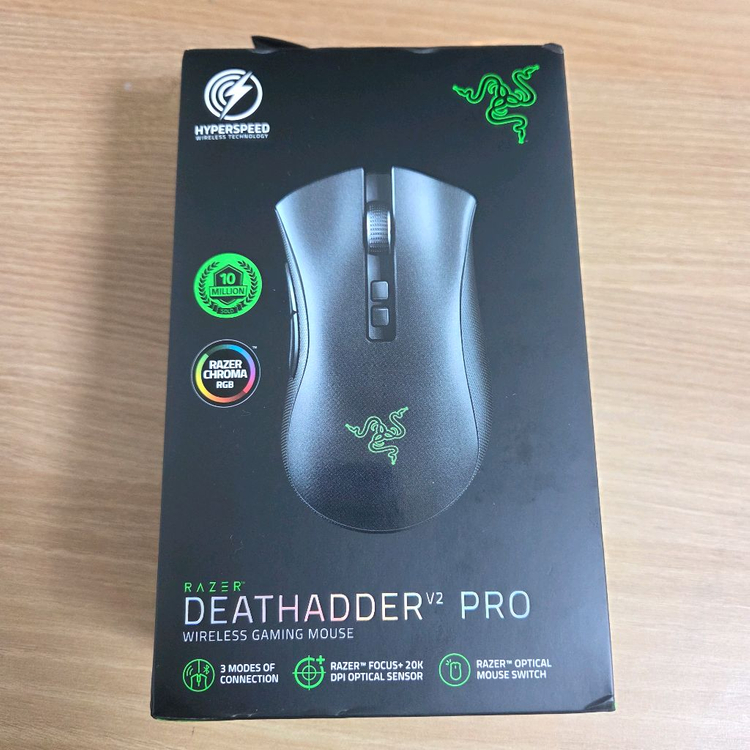 레이저 데스에더 V2 Pro 무선 게이밍 마우스 국내정품입니다. 작년 여름쯤 구매했는데 마우스가 여러개라 사용이 많지 않아 상태 매우 좋습니다. 국내정품으로 2년 무상보증되구요. 모든 구성품 포함된 풀박스이며, 마우스 파우치도 함께 드립니다. 택배거래시 운송비 포함가입니다