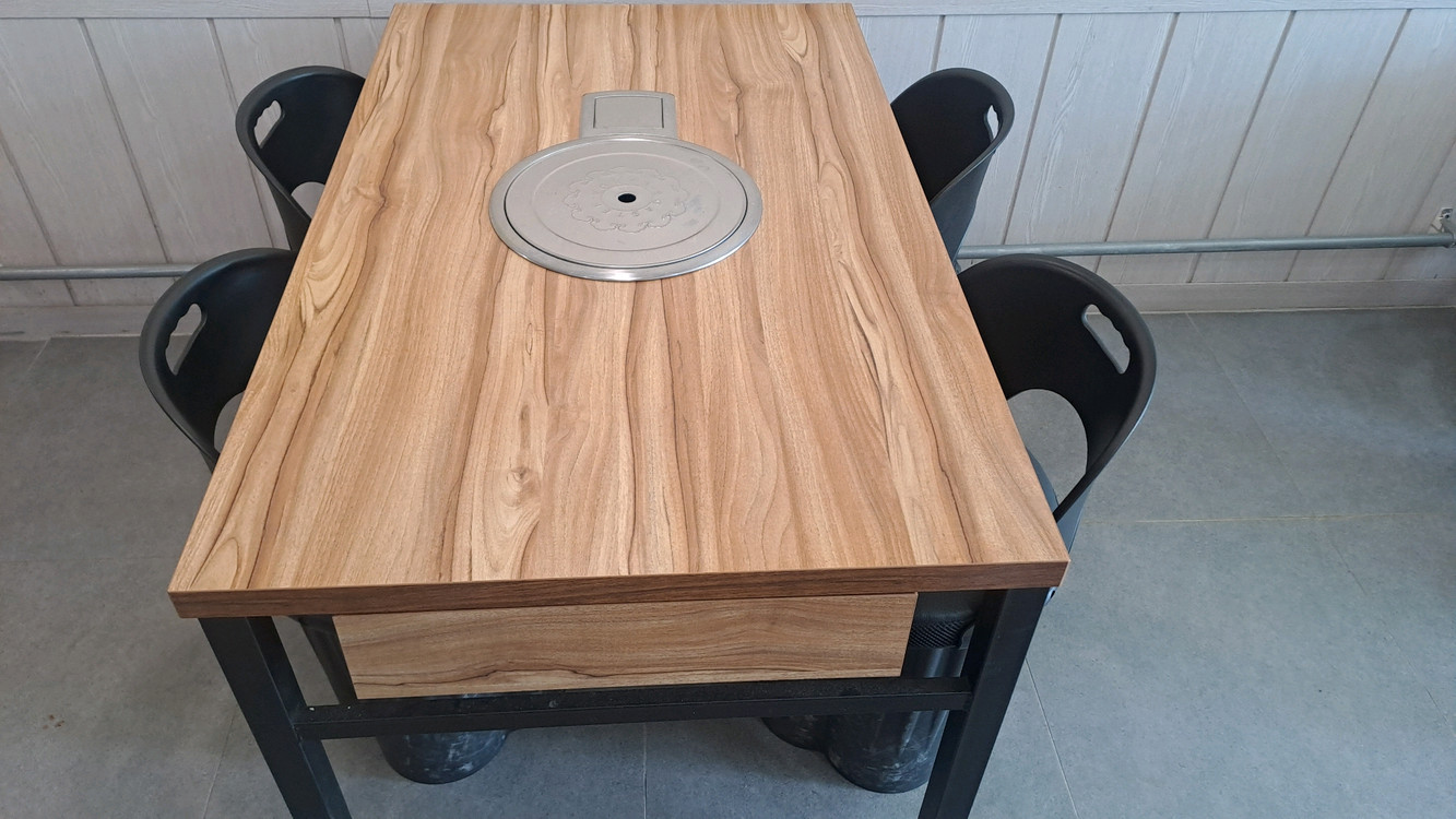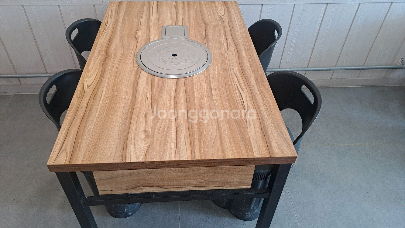 깔끔한 4인용 식탁 테이블이에요 식탁 위에는 불판을 놓을 수 있는 공간이 마련되어 있고, 서랍이 붙어있고 상태 아주좋아요 식당이나 가정에서 사용하기 좋은 테이블입니다 새제품 구매하시려면 3배는 줘야해요 좋은 물건 싸게가져가세요 서랍테이블+테이블가스레인지+의자4개 세트로 6개있어요 (의자 24개중에 5개는 조금씩 안지워지는 오염이있어요) 세트당 65000원이예요 6세트 다 사가실분께 먼저 팔아요 5월9일 이후에 가져가실수있어요 남양주예요 가져가셔야해요 문의 공1공3345오783