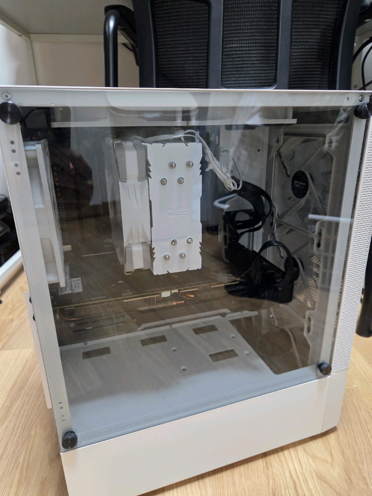CPU: AMD 라이젠5 7600 (라파엘) 메인보드: ASUS TUF Gaming A620M-PLUS WIFI 그래픽카드: 이엠텍 RTX 2070 Super 메모리: 킹스톤 DDR5 16GB (8GB x 2) SSD: 마이크론 Crucial P5 PLUS NVMe 1TB 파워: 마이크로닉스 700W 쿨러: darkFlash Ellsworth S21 ARGB 화이트 케이스: darkFlash DK200 RGB 강화유리 OS: Windows 11 Home 흡연 x 애완동물 x 채굴 x 가정에서 게임용으로 쓰던 완본체 판매합니다. 성능 좋고 조용합니다.