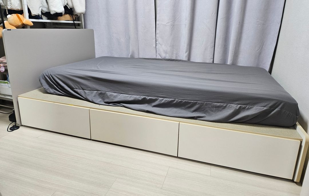 한샘 아임빅 수납침대 일반헤드형 슈퍼싱글침대입니다. 안쪽벙커있고 수납공간서랍 3곳이고 깊어서 물건많이 들어가요. 침대상태 양호합니다. 매트릭스는 한샘껀아니고 메모리폼으로 따로구입한건데 상태양호하여 원하심 같이 드립니다. 판매가5만원. 용달로 오셔서 직접 실어가셔야합니다. 위치는 서울망우역 근처입니다.