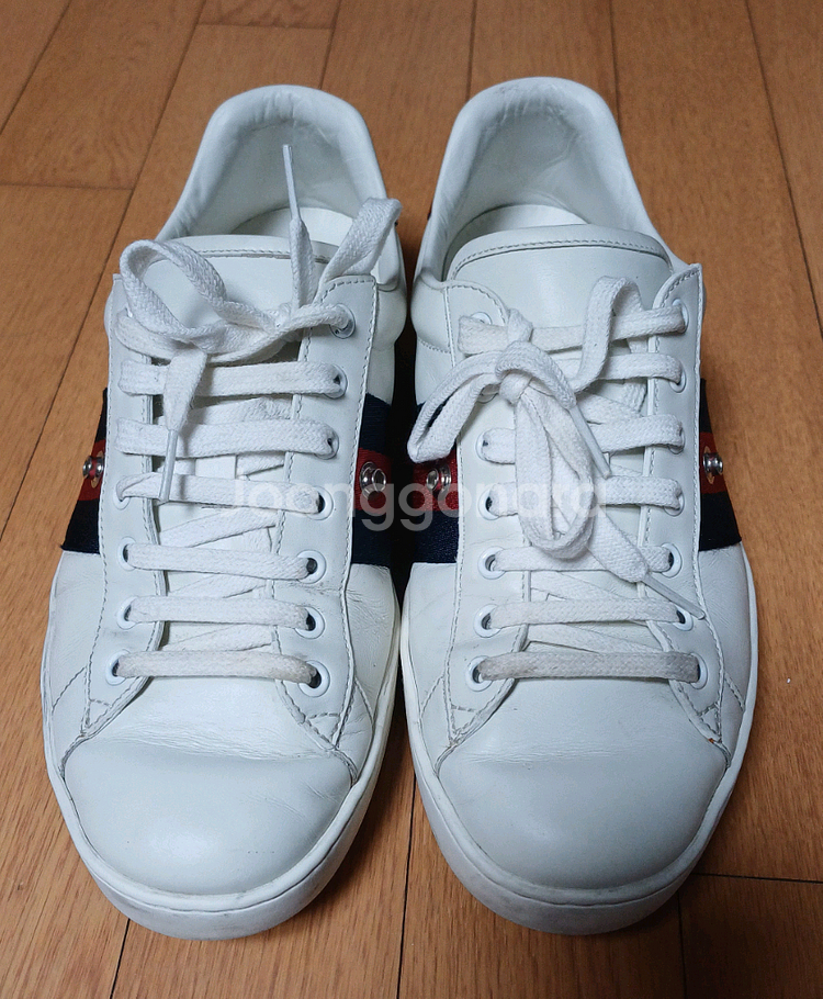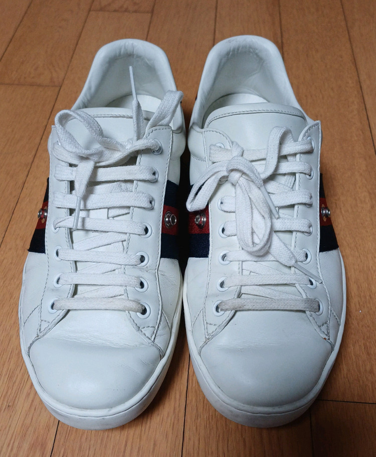 구찌의 베스트셀러 모델인 에이스 스니커즈 판매합니다. 어떤 코디에도 잘 어울리는 화이트 가죽에 구찌만의 삼색 시그니처 배색이 들어간 스테디셀러 아이템입니다. 구성: 신발 단품 (사진 실사 확인 부탁드립니다.) 사이즈: 구찌 사이즈 8.5 (국내 275mm 추천) 상태: 자연스러운 가죽 주름과 생활 기스 등 사용감은 있으나 전체적으로 깨끗하게 관리했습니다. 뒤축 뱀피 디테일과 내부 각인 모두 살아있는 정품입니다. 깔창 상태도 사진으로 확인 가능합니다. 특징: 유행을 타지 않는 디자인이라 데일리로 신기 아주 좋습니다. 청담역직거래 또는 배송비 별도 입니다.