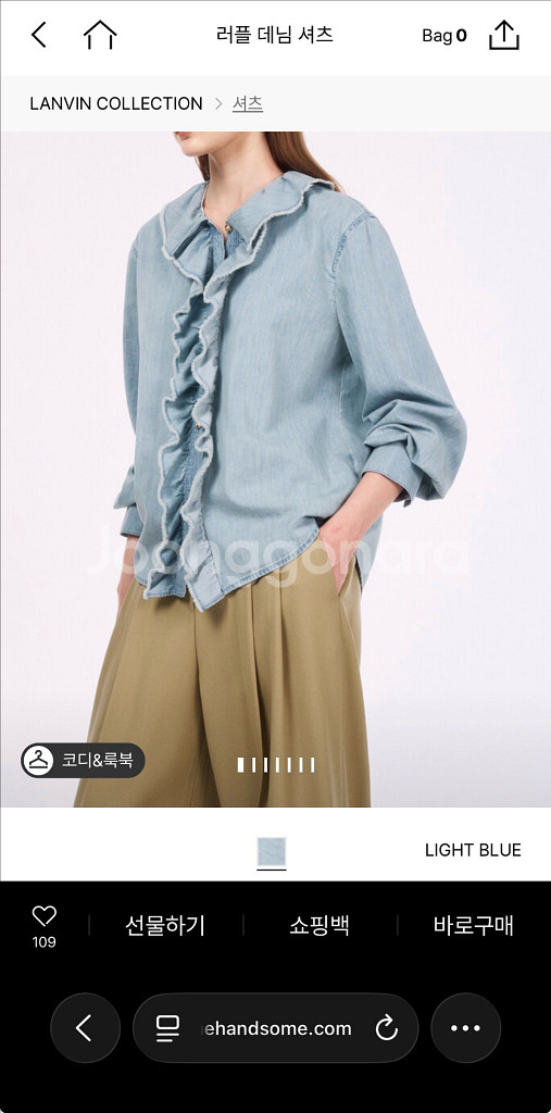 개인정보(거래정보)를 주고받는 행위는 사기에 노출될 수 있으므로 즉시 중고나라로 신고해 주세요랑방 러플 데님 셔츠(55) 새상품 사놓고 안 입어서 판매해요 예뻐요 에눌 교환 환불 안 됩니다