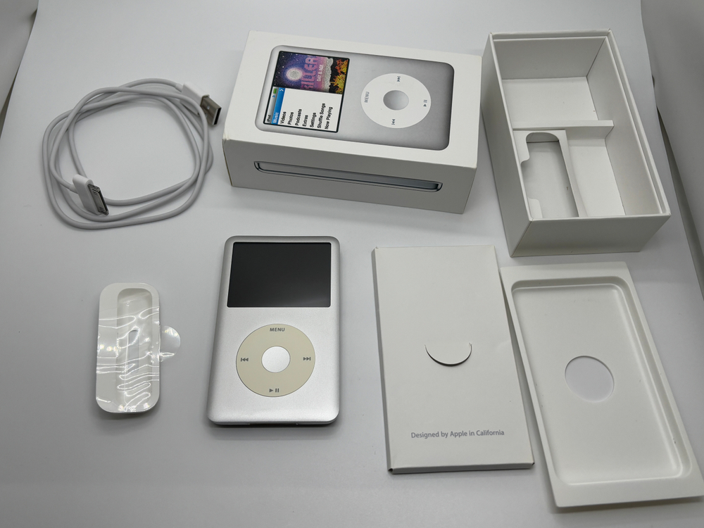 아이팟 클래식 7세대 256g 실버 전면부분 모서리쪽 기스 제외하면 깨끗한편이고 후면에 자잘한 기스들 많습니다. 재질 특유의 광택은 남아있습니다 최소 음량 상태에서 음소거 되지 않고 약하게 소리가 나옵니다 그외 다른 작동 이상 없습니다 하드디스크를 256G ssd로, 배터리 대용량 새배터리로 교체받았습니다 구성품은 박스(설명서) + 기기 + 30핀 to usb a 케이블 입니다 이어폰은 없고 박스 외관 살짝 찌그러진 부분 있습니다 케이블로 usb a포트 충전기 또는 컴퓨터에 연결하셔서 충전 및 음악 넣으실 수 있습니다 판매 완료 되어있지 않으면 계속 판매 중인상태입니다 구매 원하시는 경우 별도의 문의 없으시면 바로 결제하셔도 됩니다