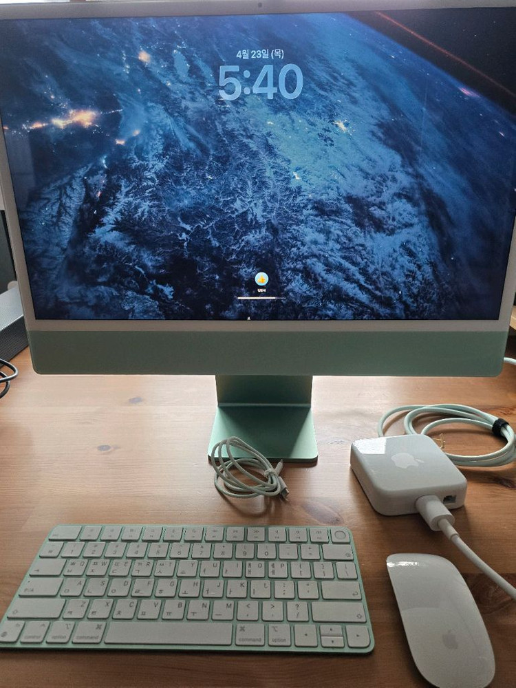 애플 아이맥 24인치 M1 칩 16g메모리 256 ssd 8코어 cpu 8코어 gpu 뒷면 usb포트4개 고급형입니다 사진과 같이 터치아이디 매직키보드와 매직마우스, 전원 어댑터, 충전케이블 구성이며 박스는 없습니다 한곳에서 사용해서 상태 좋으며 4.5k 모니터와 괜찮은 스피커 등등 올인원으로 16기가 메모리라 지금도 충분히 사용하기 좋습니다 경기도 부천 상도중학교 근처 지정구역에서 직거래만 가능하며 구매원하시는분은 연락 부탁드립니다 네고문의는 사양합니다