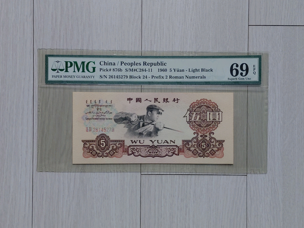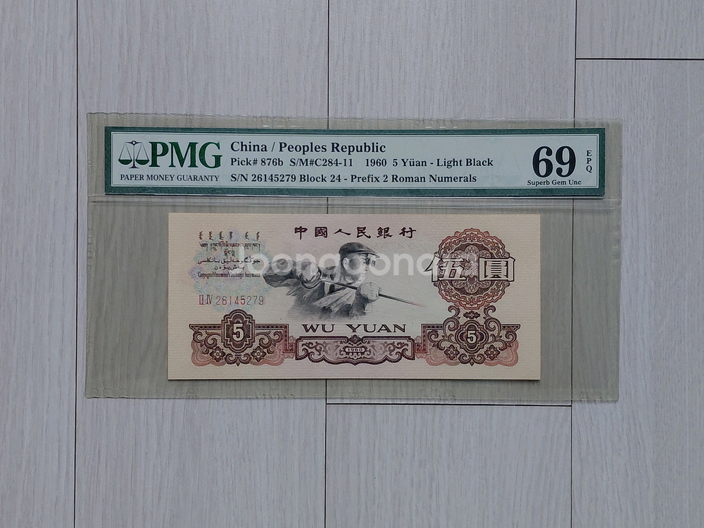 . " (택배) (우편) " " 개인간 [계좌이체] " 거래 (불)가능 합니다 직거래] 69 초고등급 [PMG] (중국인민은행) 지폐 " ■ (직) 거래 ■ " (가능) 하신분 " (만) " (직) 거래 하실분은 " 서울 지하철 3호선 (녹번역) " 에서 지금 " 바로 " 거래 합니다 1960년 [ 중국인민은행 ] 5 위안 지폐 " (완전) 미사용 " (상태) 입니다 지금으로부터 66 년 (전) 인 1960년 [ 중국인민은행 ] 에서 발행 유통 되었던 지금부터는 통용 되지 (않) 는 " 단종 " 된 지폐 로 ( 그레이딩 ) 70 등급 (만점) 에 69 (초고) 등급 (획득) 한 이런 [ 중국인민은행 ] 지폐 를 [ 시중에서는 ] " 전혀 " 구할수가 (없)는 지폐 입니다 [ 전세계적으로 ] (지폐) 감정 평가 로 제일 인정 받고 있는 [ 미국 ] PMG ( 그레이딩 ) 에서 69 EPQ (완전) 미사용 (초고) 등급을 획득 하기는 생각보다 도 확률보다 도 결코 쉽지가 (않) 습니다 그래서 ( 그레이딩 ) 1 등급 ~ 68 등급 지폐 를 (제외) 한 ( 그레이딩 ) [ 69 등급 ] 과 [ 70 등급 ] 2 가지 등급 지폐 (만) (값) 비싸게 거래될수 (밖) 에 (없) 습니다 상기 (실물 그대로) (앞/뒤) (실물) 사진 자세히 보시고 거래 (후) (반품) " 불가 " 합니다 ㆍ