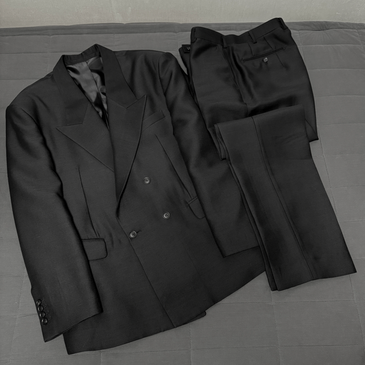 블랙 울 실크 더블 슈트 셋업입니다! 작년 말 르메테크에서 구매 후 약 3회 미만 착용 후 보관 중이어서 상태 매우 좋아요! 사이즈도 사진에 첨부해놓겠습니다! 셋업으로 판매 중이며 재킷과 팬츠 따로따로 구매는 불가능합니다..! LEMETEQUE 르메테크는 오로지 연예인들만을 위한 한국 디자이너 브랜드이며 최근엔 빅뱅 탑, 스키즈 필릭스, BTS 진과 뷔 등 수많은 연예인들이 애용하고있는 브랜드입니다! 또한 기성복 브랜드가 아니기때문에 제품 하나하나가 전세계에 유일한 제품들이라 희소성이 매우 강한 브랜드이기도합니다! 울 80%, 실크 20%로 일반적인 울 수트보다 탄탄한 실루엣이 특징이며 이 슈트 한 벌 원단값만 50만원 가까이하는 매우 고급 원단입니다! 재킷엔 내부 포켓 두 개가 있으며 리얼버튼이에요! 팬츠는 기본 핏입니다! 제가 올린 제품들 같이 구매하시면 어느정도 할인 가능하니 편하게 문의주세요! 직거래는 오산역이나 그 근처에서 가능하며 택배는 배송비 포함 금액입니다!