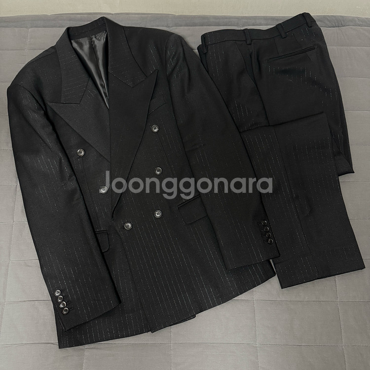 블랙 울 스트라이프 더블 슈트 셋업입니다! 작년 말 르메테크에서 구매 후 약 3회 미만 착용 후 보관 중이어서 상태 매우 좋아요! 사이즈도 사진에 첨부해놓겠습니다! 셋업으로 판매 중이며 재킷과 팬츠 따로따로 구매는 불가능합니다..! LEMETEQUE 르메테크는 오로지 연예인들만을 위한 한국 디자이너 브랜드이며 최근엔 빅뱅 탑, 스키즈 필릭스, BTS 진과 뷔 등 수많은 연예인들이 애용하고있는 브랜드입니다! 또한 기성복 브랜드가 아니기때문에 제품 하나하나가 전세계에 유일한 제품들이라 희소성이 매우 강한 브랜드이기도합니다! 일본산 울 100%로 다른 울 수트보다 부드러운 느낌이며 은은한 실버 스트라이프가 있는 매우 고급 원단입니다! 재킷엔 내부 포켓 두 개가 있으며 리얼버튼이에요! 팬츠는 기본 핏입니다! 제가 올린 제품들 같이 구매하시면 어느정도 할인 가능하니 편하게 문의주세요! 직거래는 오산역이나 그 근처에서 가능하며 택배는 배송비 포함 금액입니다!