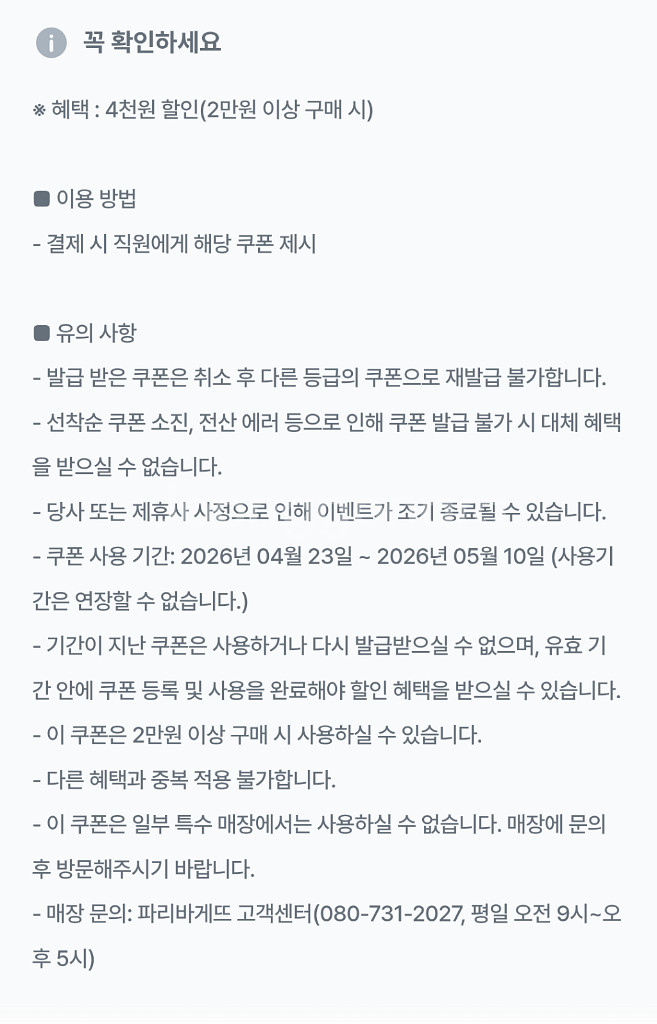 파리바게뜨 4천원 할인 쿠폰