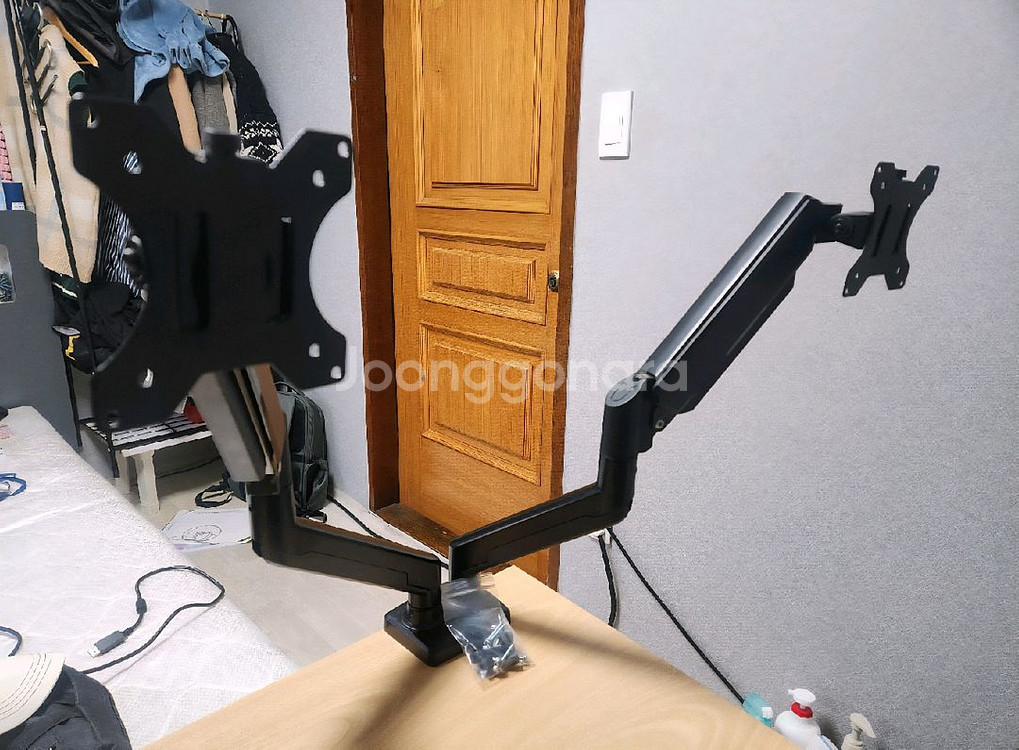 개인정보(거래정보)를 주고받는 행위는 사기에 노출될 수 있으므로 즉시 중고나라로 신고해 주세요듀얼모니터 암입니다. 가스실린더 작동방식으로 각도 조 절과 높이 조절이 자유롭고 32인치 모니터도 잘 버팁니 다. 사용감 있지만 기능상 문제없이 잘 작동합니다. 구매 한지 오래되어 모델명은 기억나지 않습니다. 브랜드명은 딱히 없던것으로 기억합니다. 배사 규격은 75x75, 100×100 입니다.