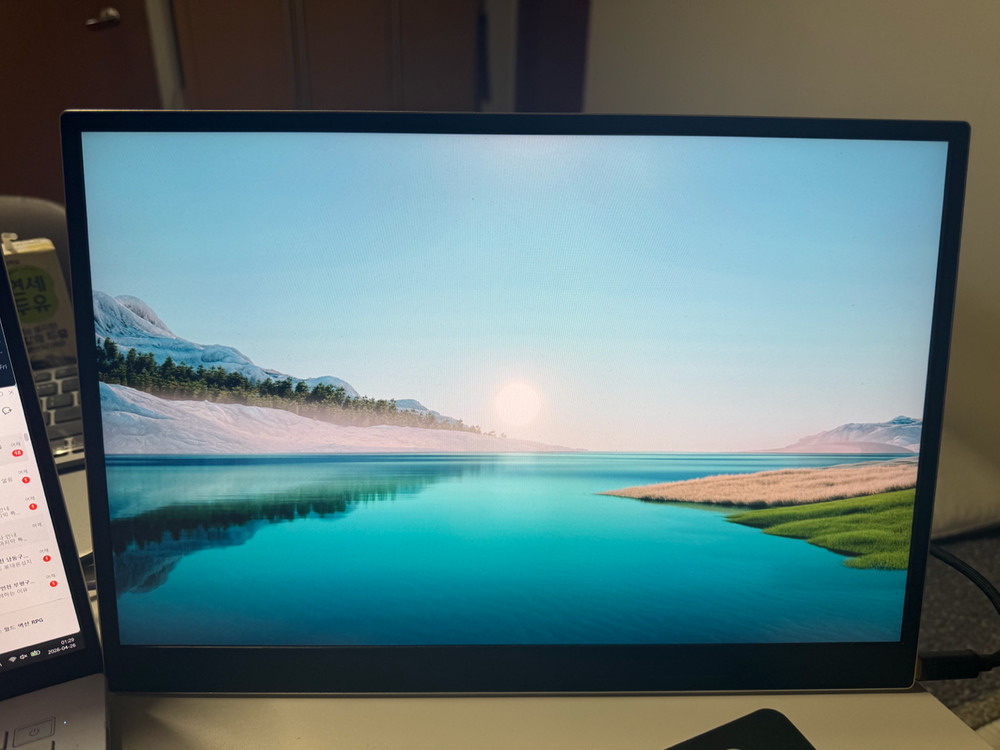 LG 포터블 모니터 16인치 판매해요 선명한 화질로 문서 작업, 영상 시청 등 다양하게 활용하기 좋아요 가볍고 슬림해서 휴대하기도 편리하답니다 업무 효율을 높여줄 서브 모니터로 딱이에요 사용한지 6개월 정도 된듯 합니다 별다른 특이사항 없고 구성품중 lg케이블이 불량이었어서 케리블 새로 구매한거 함께 드리겠습니다. 끊어질일 없이 엄청 튼튼한 케이블. 임니다 25 만원에 판매 합니다 인천 간석역 근처 거래 원합니다 일상 시간엔 선유도역 인근 거래 합니다 010-3482-일3오오. 연락 주세요