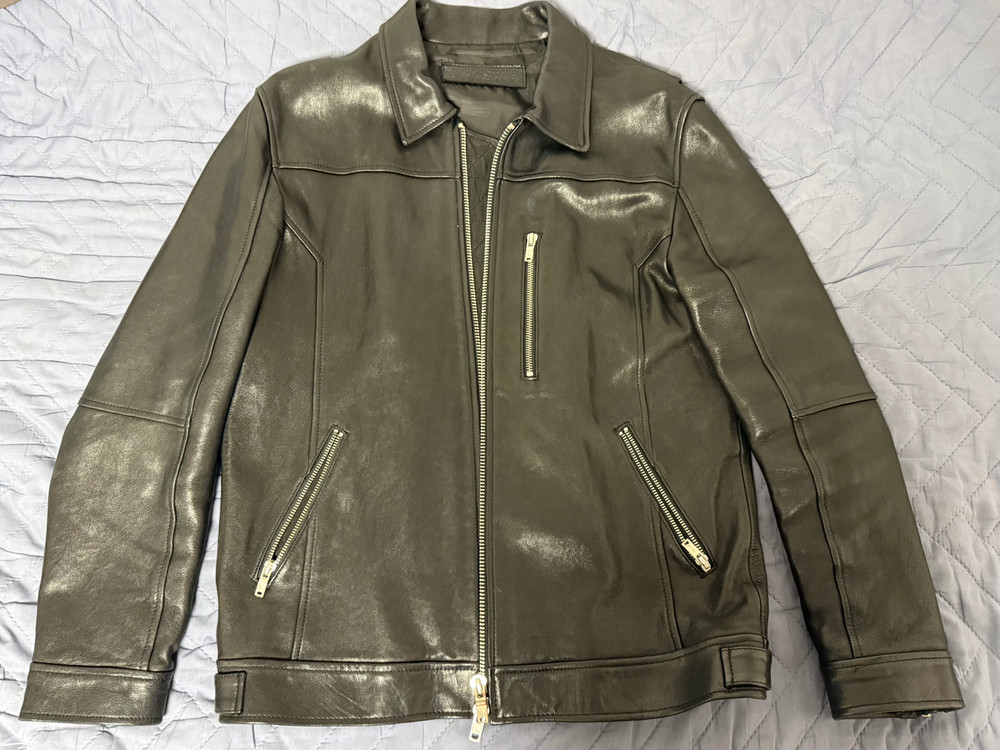 느와르라르메스 스탠다드 싱글 가죽자켓입니다. 가슴쪽에 지퍼디테일이 들어간 모델은 현재 단종된 모델로 희귀템이라고 볼 수 있습니다. 2021년쯤에 선물받아서 좀 입다가 잘 보관 후 판매합니다. 좀 된 모델이라 라벨쪽에 제조일자는 따로 표기 되어 있지 않습니다. 상태도 괜찮고 좋습니다. 저렴하게 사서 봄 초여름 가을 초겨울까지 시크한 훈남템을 완성해보세요! 48사이즈(L/100) 택포 24만5천원입니다.