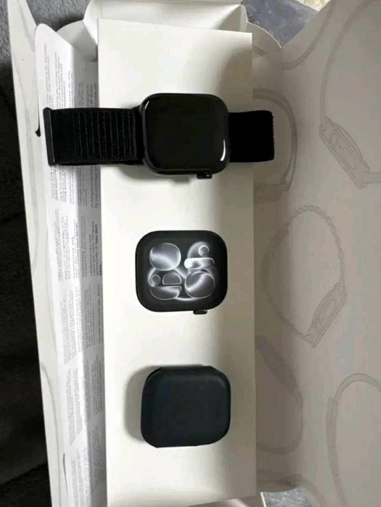 애플워치 11 > 42mm 풀박스 제품입니다 -기본 스트랩 , 충전 케이블 등은 미개봉 새상품 입니다 구매 했을 때에 받았던 모든 구성품 , 박스 모두 포함 되어 있습니다 본체만 개봉인 상태이고 나머지 구성품 들은 모두 미개봉 상태 입니다 다들 사서 끼길래 따라 사봤는데 일상 생활에 영향력을 주는게 하나도 없어서 판매합니다 ㅜ 구매후 1번 착용하고 판매 하는거라 상태 A급 입니다 -베터리 성능 100퍼센트
