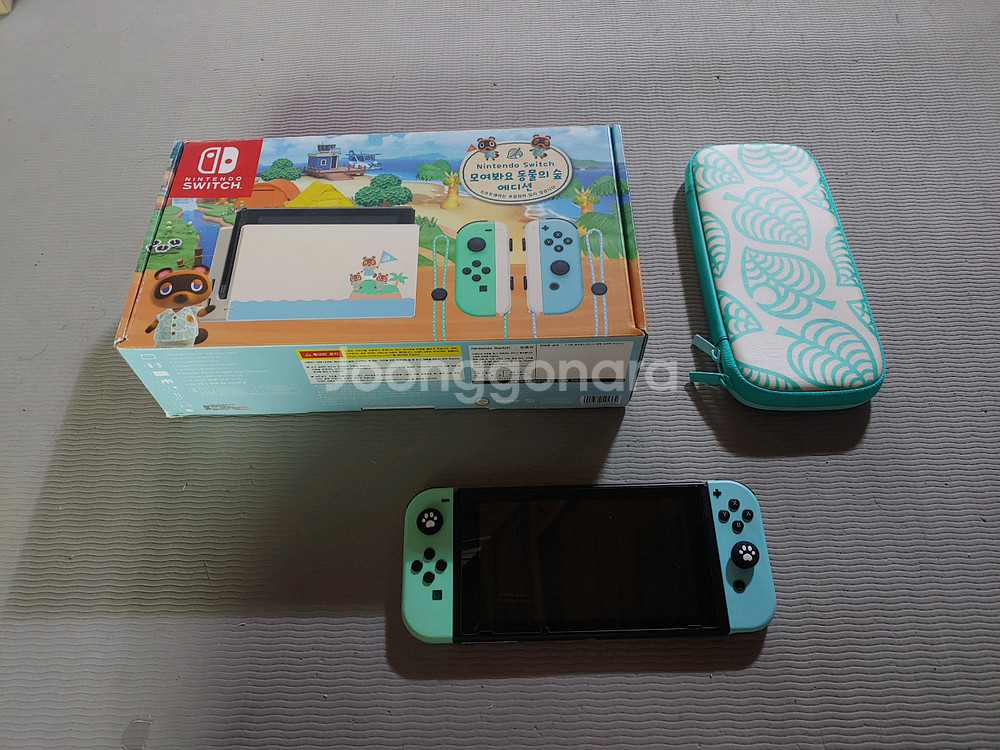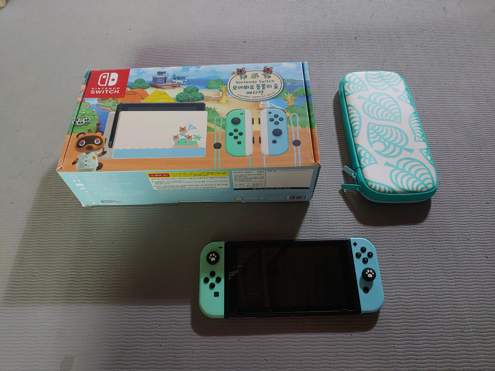 구성품 정품으로 모두 들어있는 배터리개선판 동숲에디션 풀박스입니다. 박스안에 상단 종이칸막이가 앖어서 기기본체는 파우치에 넣어서 드립니다. 액정에 강화유리 붙어 있고, 조이콘 쏠림 없고, 걸쇠빠짐 없으며, 기능상 하자 전혀 없습니다. 512sd카드 가득 들어있으며, 모드칩 작업 되어 있어서 지그&로더 없이도 듀얼부팅, 틴포일 가능합니다. 정펌모드에서 정품칩 꽂으면 온라인게임도 가능합니다. 사용방법 알려드리고 설명서 보내드립니다. 네고 문의는 받지 않습니다. 직거래 인천, 안전결제 가능(택배비 별도)