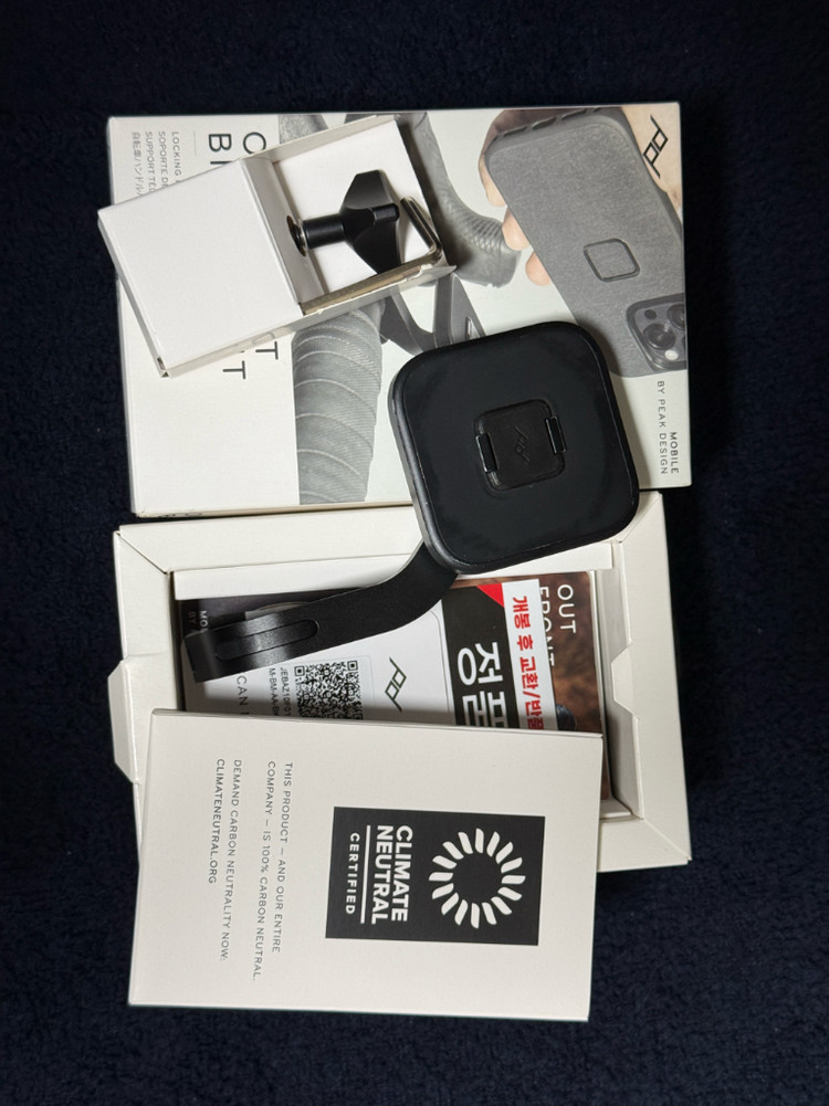 Peak Design 스마트폰 자전거 마운트 풀박스입니다 작년 10월 중순 구매 2개월간 사용 사용감 있음(사진참조) 가민 엣지 구매로 판매함