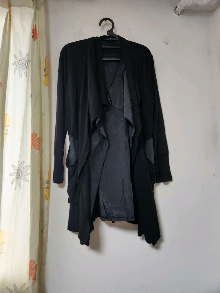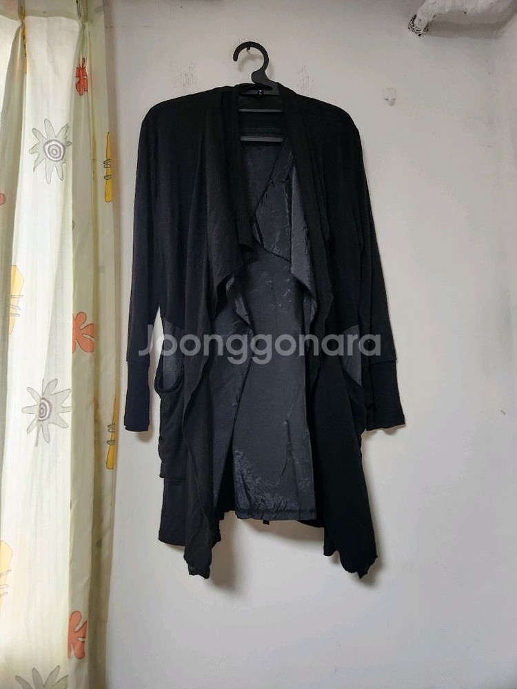 블랙 색상의 언발란스 롱 가디건입니다. 88사이즈로 넉넉하게 떨어지는 핏입니다. 독특한 디자인으로 포인트를 줄 수 있습니다. 문의 없으시면 바로 안전결제해주시면 됩니다!