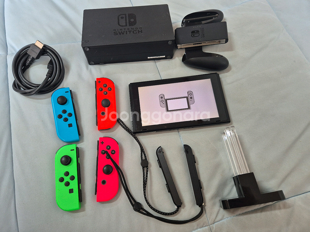 닌텐도 스위치 구형 팝니다. 2018년 버전이고 순정 기기입니다 기기 정상작동하고 터치나 인터넷 등 다 잘됩니다. 조이콘 2쌍 모두 정품이고 쏠림없고 버튼들도 다 잘 작동하고 무선연결도 잘 됩니다. 구성품은 사진에 나온대로 구성입니다. 충전기가 없으며, 충전이나 티비출력시에는 C타입 충전기 사용하시면 됩니다. 액정보호필름이 부착되어있어서 필름 벗겨내면 깔끔할겁니다. 하자는 1. 본체 액정에 황변이 조금 있습니다. 플레이시엔 딱히 신경쓰이진 않았고 티비에 연결하면 지장 없습니다 2. 뒷면 거치대부분이 헐겁습니다. 거치대 사용할 일이 없어서 지장 없습니다 가격은 17만원에 판매하겠습니다 옆게시글 칩과 같이 구매 시 네고 가능합니다 직거래는 경남 창원 사림교회인근에서 가능합니다