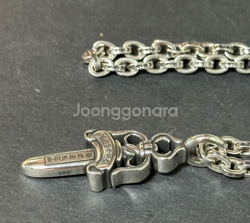 개인정보(거래정보)를 주고받는 행위는 사기에 노출될 수 있으므로 즉시 중고나라로 신고해 주세요해외구매 크롬하츠 페이퍼체인 목걸이+더블대거 팬던트 세트 크롬하츠 페이퍼체인 60cm 24인치 더블대거 팬던트 미디움 사이즈 고리포함 5cm 집에서만 몇번 착용해보고 보관만함 전부실사진 유화가공처리 내부14k및풀각인 은x 정문의x