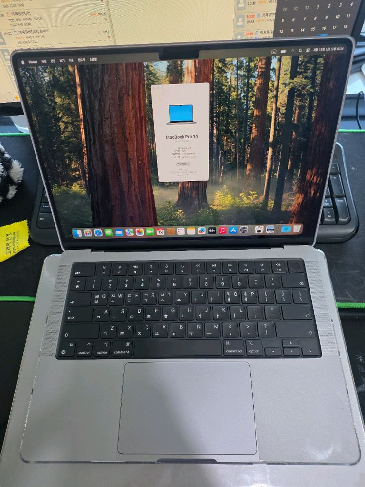 맥북 프로 14인치 M3칩 모델입니다 - Apple M3 칩 - 8GB 메모리 - 512GB SSD - Built-in Liquid Retina XDR Display 배터리 성능 100프로 상태는 사진과 같이 좋으며 프로그램 전부 깔아드립니다. 궁금하신 점 질문주세요.