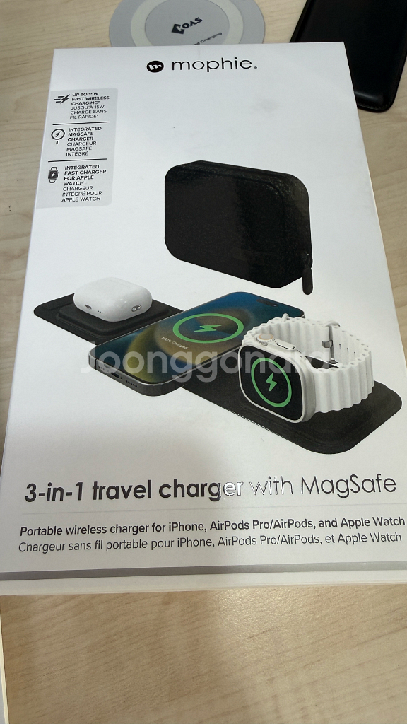 미개봉 새제품입니다 국내 애플 스토어 정식 제품이라 어댑터도 국내용입니다(국내 애플 매장 판매가 22.9이고 온라인 일반 몰에서는 25가까이 합니다 ) 3in1 패드, 케이블, 어댑터, 파우치로 구성되어 있고 2세대라 파우치가 더 고급스럽고 워치도 고속 충전되는 모델입니다 당연히 애플 mfm, mfi 인증 제품 입니다 집에서나 여행갈때 이만한게 없습니다 2개 보유 중이고 1. 미개봉 신품(사진) 14만원 2. 개봉만 하고 거의 사용하지 않은 제품 12만원에 판매 합니다 택배거래 시 3천원 추가됩니다