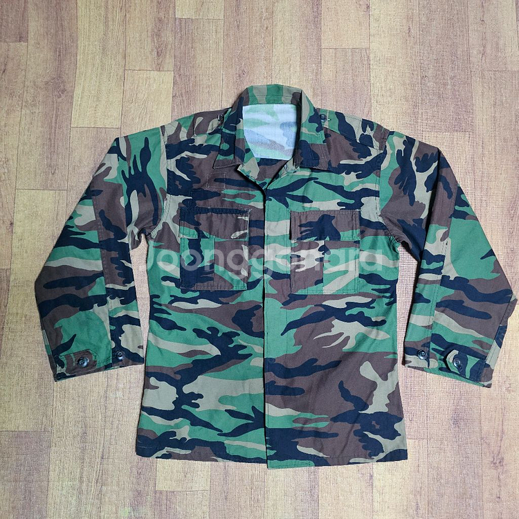 구형 국군 전투복상의 상태양호합니다만 사진과같이 오른쪽 소매쪽 약간의 스테인과 네임택과 카라쪽 계급장 떼어낸 자국이있어 다른거한개 구매하신분에 한해서 원하시는분께 서비스나갑니다 어깨단면47.5 가슴단면53.5 팔기장55.7 카라제외총기장 71.2