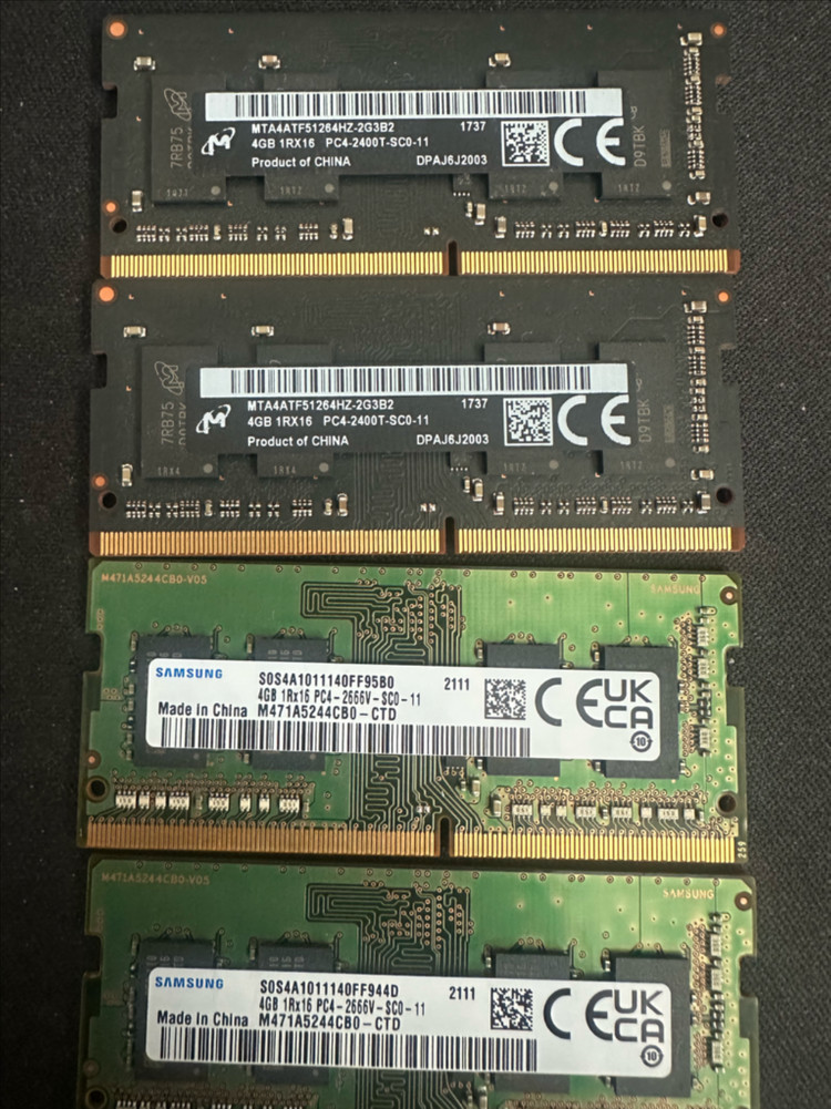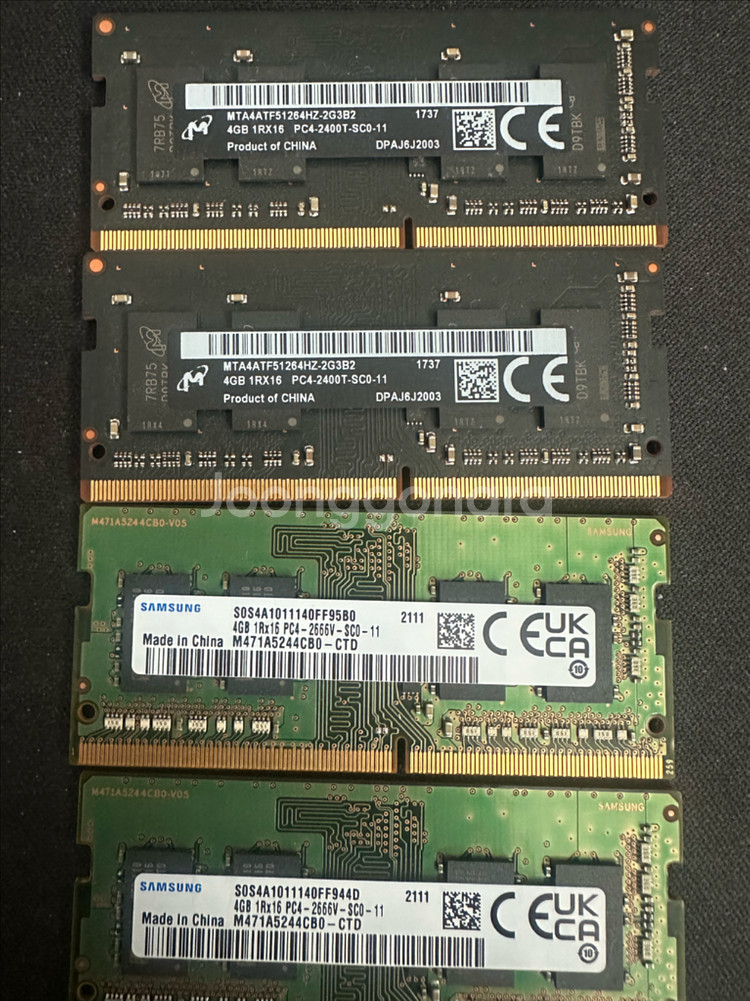 맥프로 아이맥에서 사용 한 메모리 판매합니다. 1. sk ddr3 10600E. 2gb x 8ea = 16g 맥프로사용 드림웨어 ddr3 8500e 4g x 2ea = 8gb 3만 2. 삼성 ddr3 12800s 8gb x 2ea = 16g 아이맥사용 5만 3. 마이크론 ddr4 2400t 4g x 2ea = 8gb 아이맥사용 4만 4. 삼성 ddr4 2666 4g x 2ea = 8gb 아이맥 사용 5만