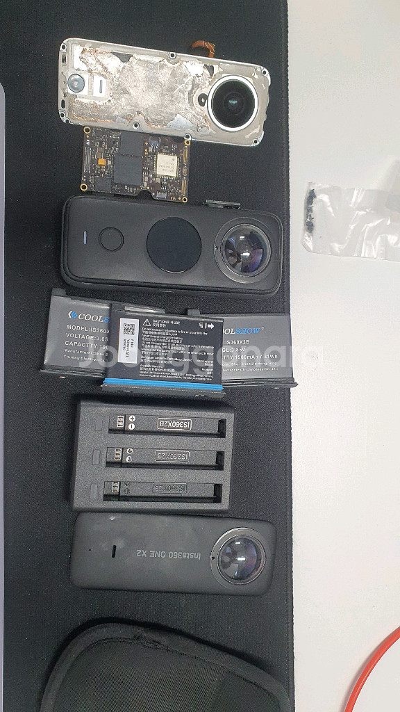 insta 360 one x2 카메라 micro sd카드 fat 형식만 부팅되고 exfat 및 카드 제거 시 부팅음만 반복해서 들립니다. 분해 후 보드 tx선을 찾아 cp2102로 로그 보려고 했으나 tx선을 못찾아 포기합니다. 전 후면 카메라, 터치패널, 스피커 등 fat로 부팅시켰을 때 정상 작동확인 했습니다. 필요한 부품은 가격 문의 주시고 전체는 결제 해주세요. 수리가 필요한 제품이니 절대 환불 불가하고 기타 다른 문의는 받지 않습니다. 구매 가격 제외한 연락은 받지않습니다.