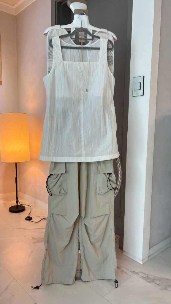 1. le 르 바스락 뷔스티에 18000 자연스런 주름 패턴의 바스락 뷔스티에로 뒷트임있고 매듭지어 포인트지어 입으심 힙해보이고 스타일이뻐요. 사이드 지퍼있어 입고벗을 때 편하고 뷔스티에 라인도 심플하게 만들어 위에 깔끔한 화이트 셔츠하나 걸치셔도 멈ㅅ져요. 총장 70 가반48 2. 셔링 조거 스트링 팬츠 18000 허리와 주머니, 아랫부분 스트링있어 힙한 스트릿감성을 더한 팬츠로 과하지 않고 베이지 컬러라 어디 받쳐입기 좋아요. 총장 101 허반 33(66까지) 택비별도