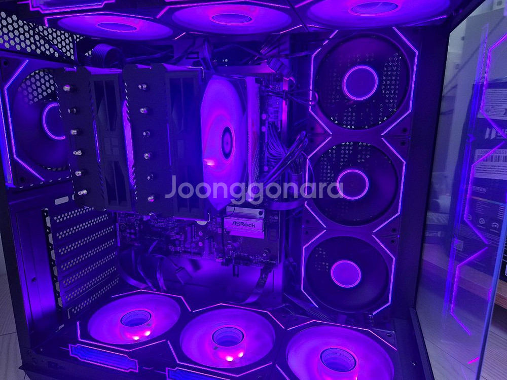 cpu: 9800x3d (현존 최고수준 cpu, 국내정품) 메인보드 에즈락 b650m pro x3d(국내정품) 그래픽카드 : 사파이어 pulse RX 9070 16gb(국내정품) 램: juhor DDR5 16GB 4800mhz x2 ssd: 마이크론 t500 1tb (dram 탑재, 초고성능) 파워: 엔클롬 1000w 80+ gold 풀모듈러 블랙 (10년 보증) 케이스 다크플래쉬 DPF 70 ARGB케이스 쿨러: PEERLESS assassin 120se(대장급 공랭) 윈도우 설치되어있습니다. 반본체는 160에 팔아요!! 안전결제 ok, 택배거래 ok 상단 하단 쿨러 총 6개 추가 장착하여 어항케이스 엄청 이쁩니다! 글카는 아직 미장착되어있습니다.